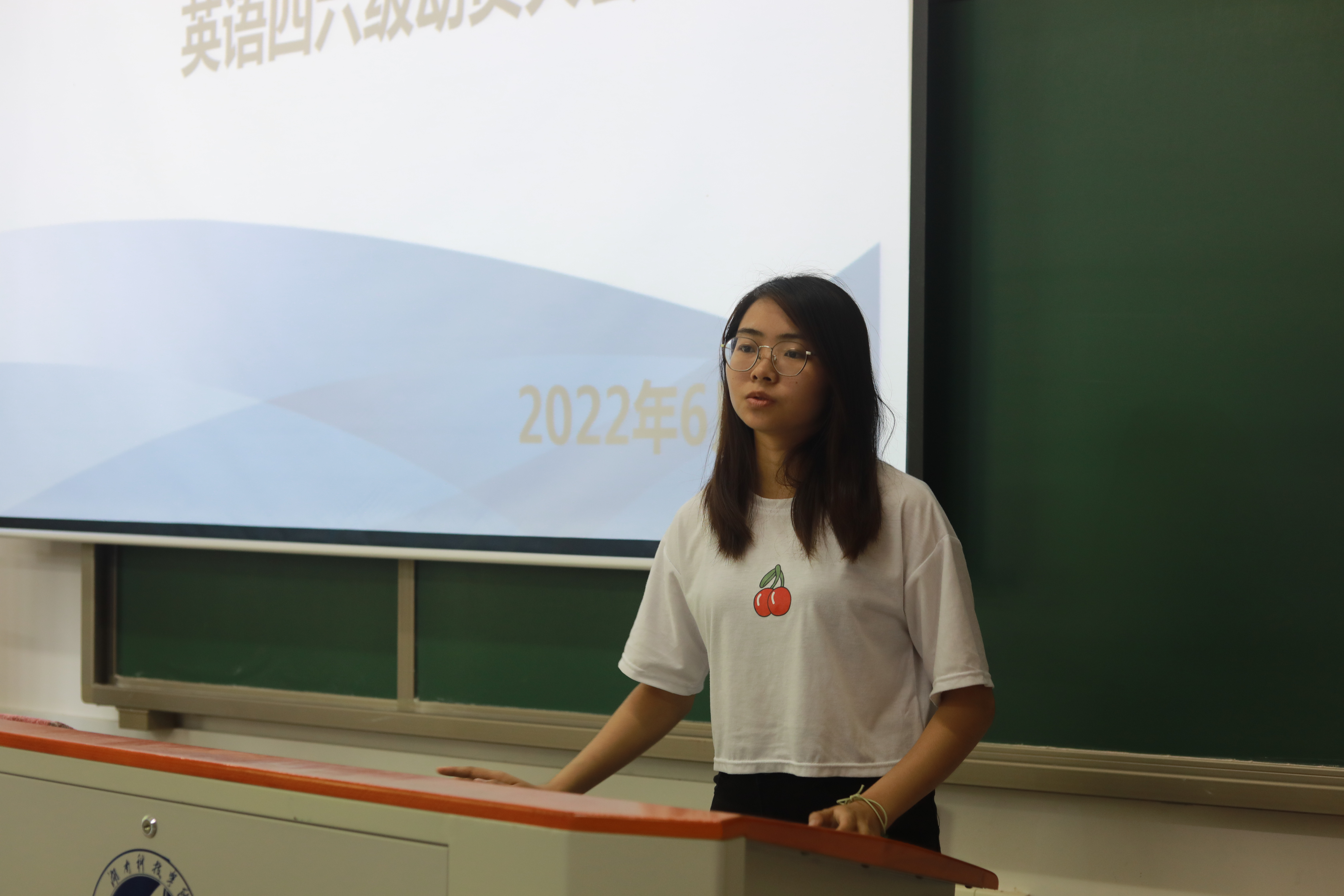会上,思政2101班李广英就英语四六级题型结构进行了进一步解读,为同学们分享了每一题型的做题技巧。同学们纷纷表示受益匪浅,增强了考试信心。