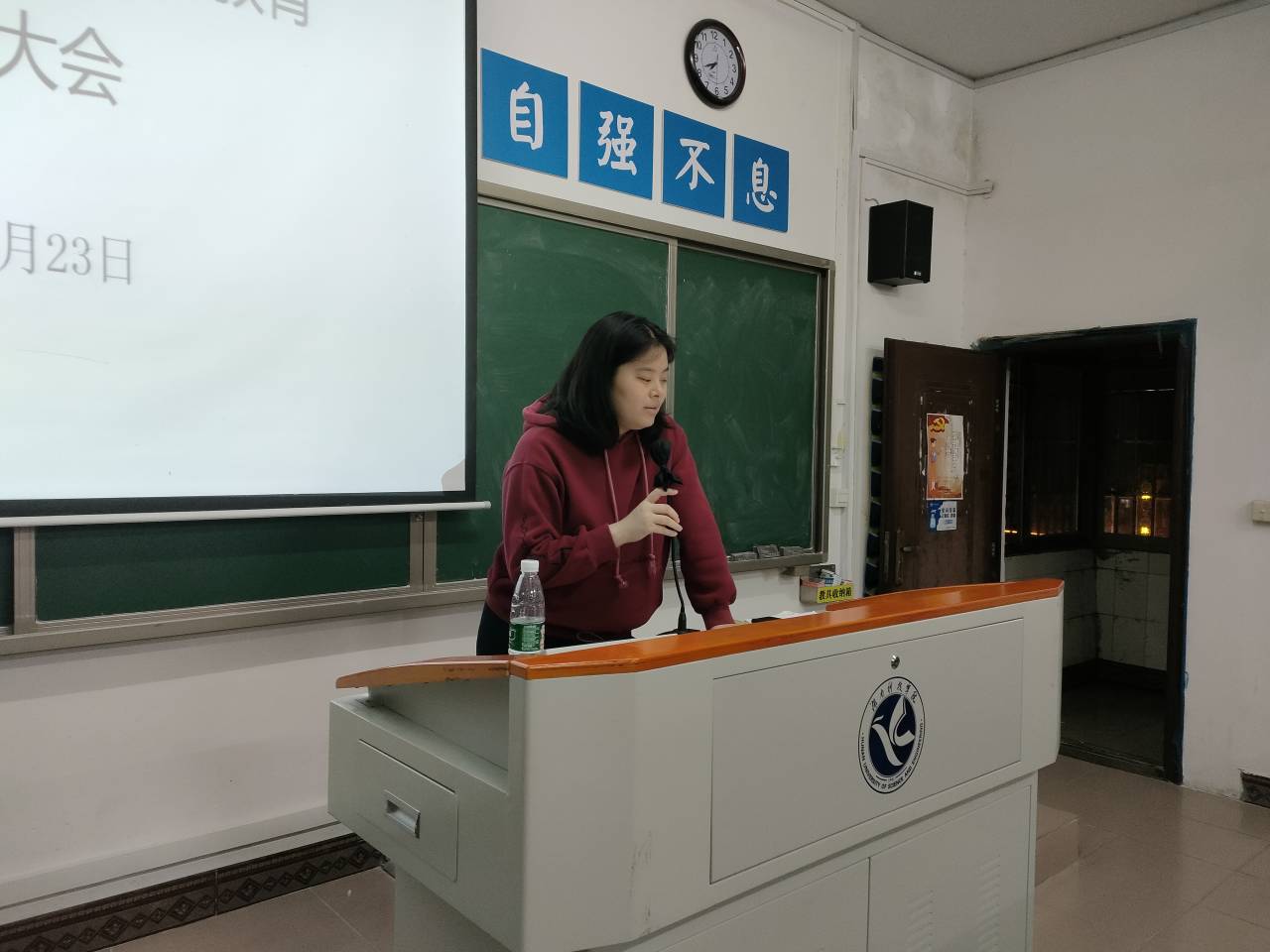 本网讯(记者 张一帆)为进一步提高同学们的纪律意识,强化学风班风,5月23日晚,马克思主义学院于鹤鸣楼501教室召开纪律教育警示大会。此次纪律教育警示大会由马克思主义学院团总支书记胡非老师主持,21级全体学生参加。