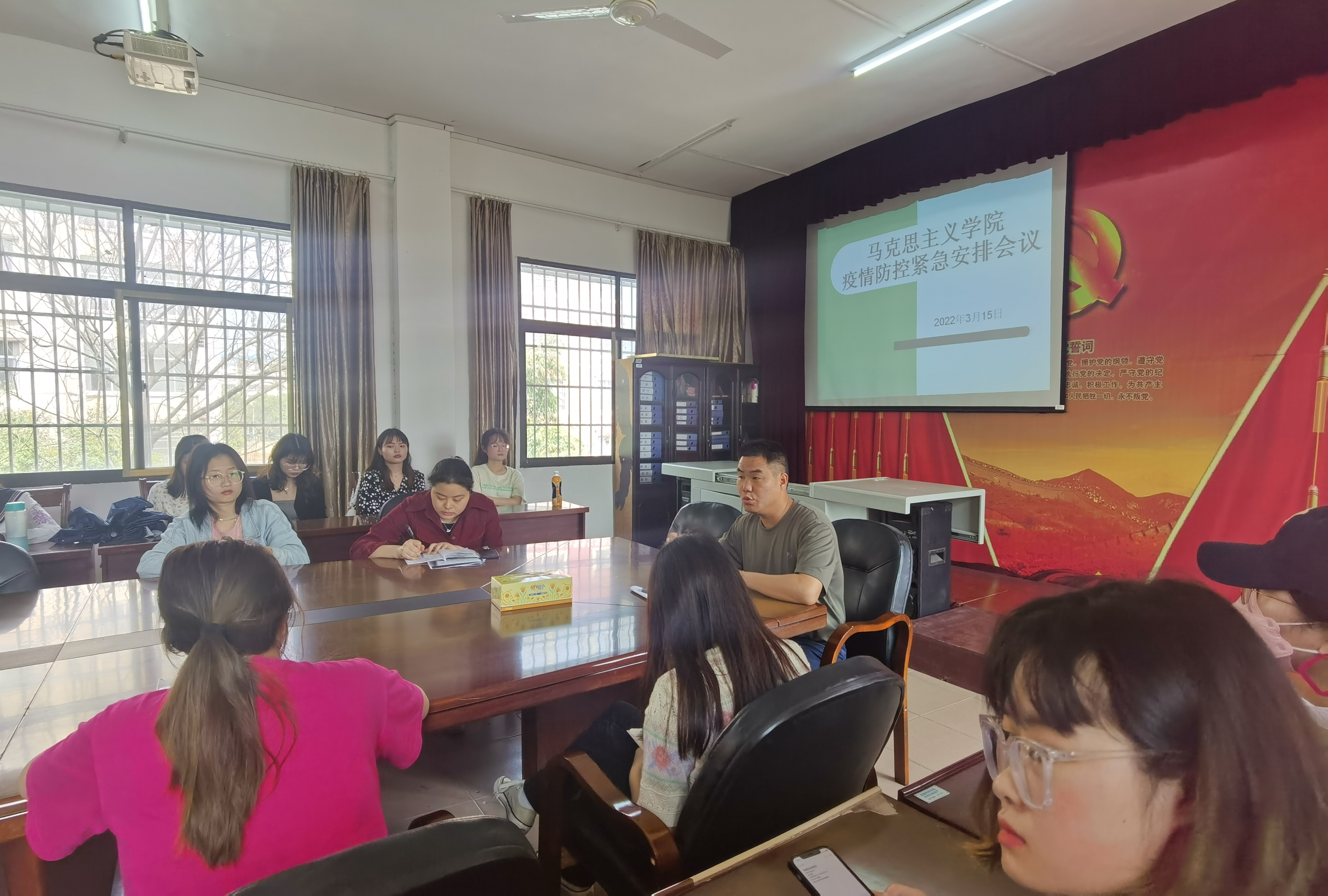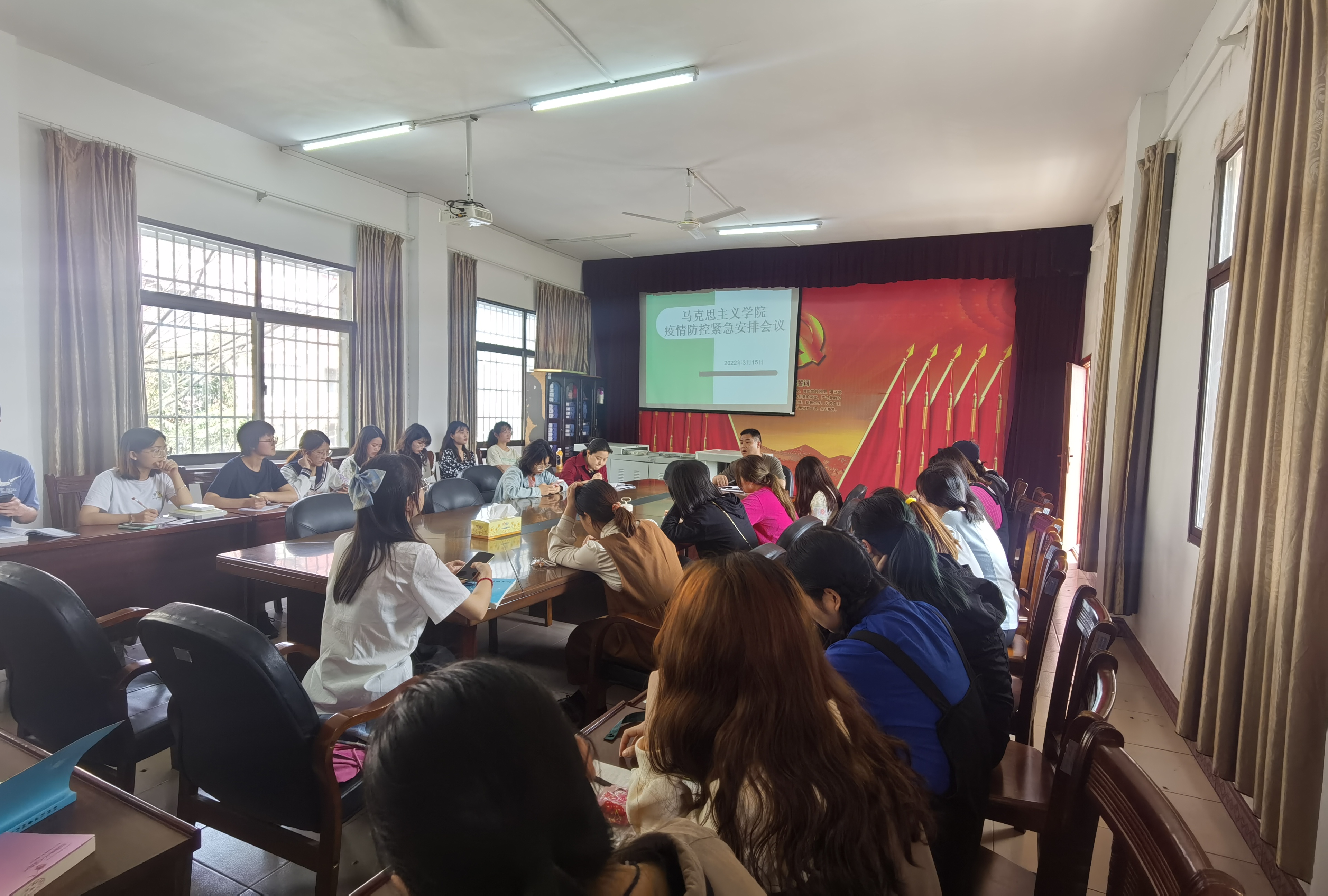 本网讯(记者 张一帆)“做好疫情防控工作,直接关系到每一位同学的生命安全和身体健康,直接关系到学校以及社会大局稳定。”3月15日,马克思主义学院于鹤鸣楼405会议室召开疫情防控紧急安排会议。本次会议由马克思主义学院党总支副书记兼副院长高丹主持,辅导员胡非以及我院各年级主要学生干部参加。