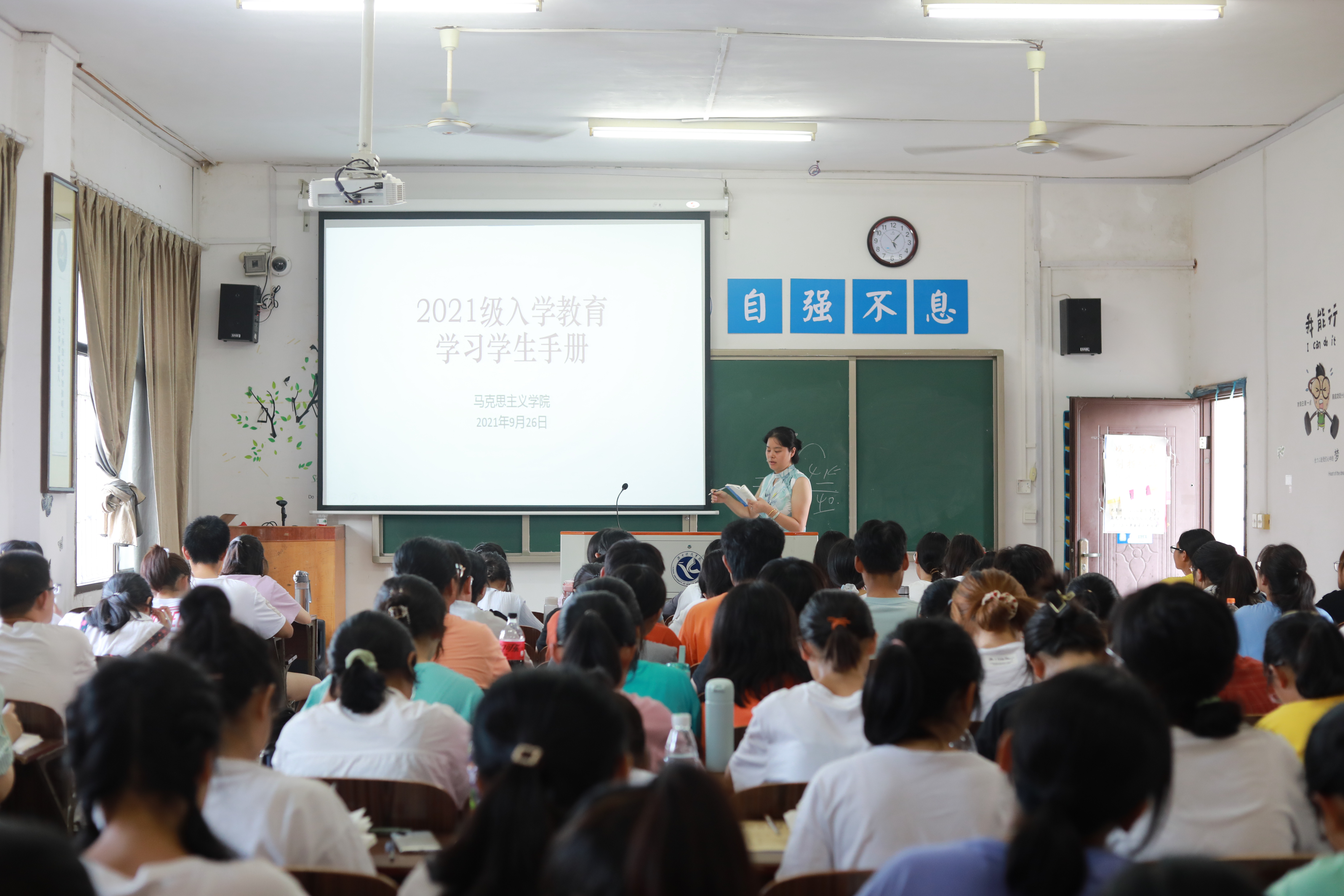 本网讯(记者 吴祖琳)为提高新生的综合素质,增进对学校规章制度的了解,9月26日下午,马克思主义学院于鹤鸣楼501教室开展2021级入学教育之学习《学生手册》活动。本次活动由21级辅导员胡非主持,全体21级新生参加。