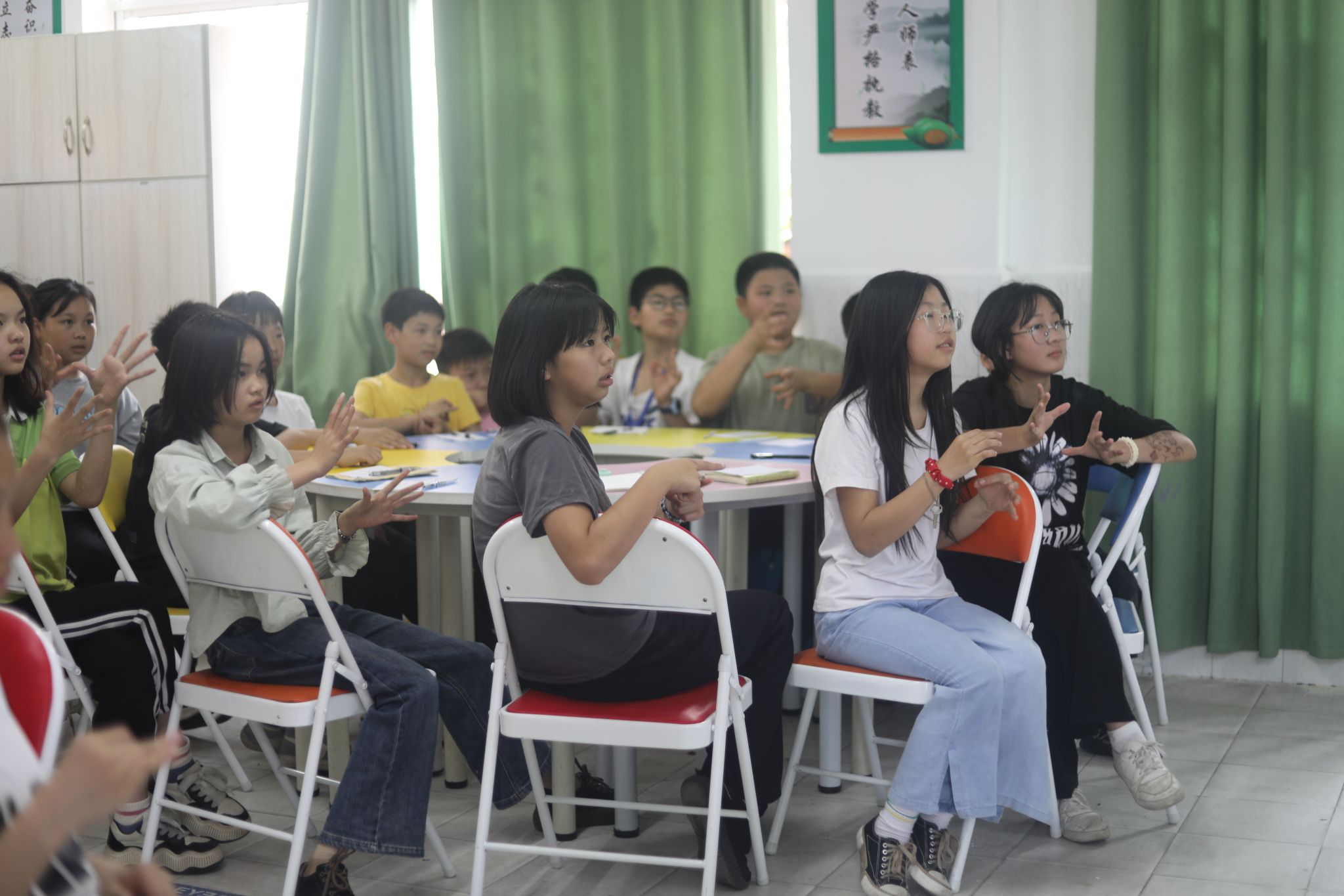 活动伊始,志愿者们用生动的语言和形象的展示向同学们介绍手语的世界。每一个手语无声无息,却蕴含着丰富的情感和内涵。在这个过程中,同学们积极参与,全神贯注地观察每一个手势的展示,认真学习着志愿者的动作。