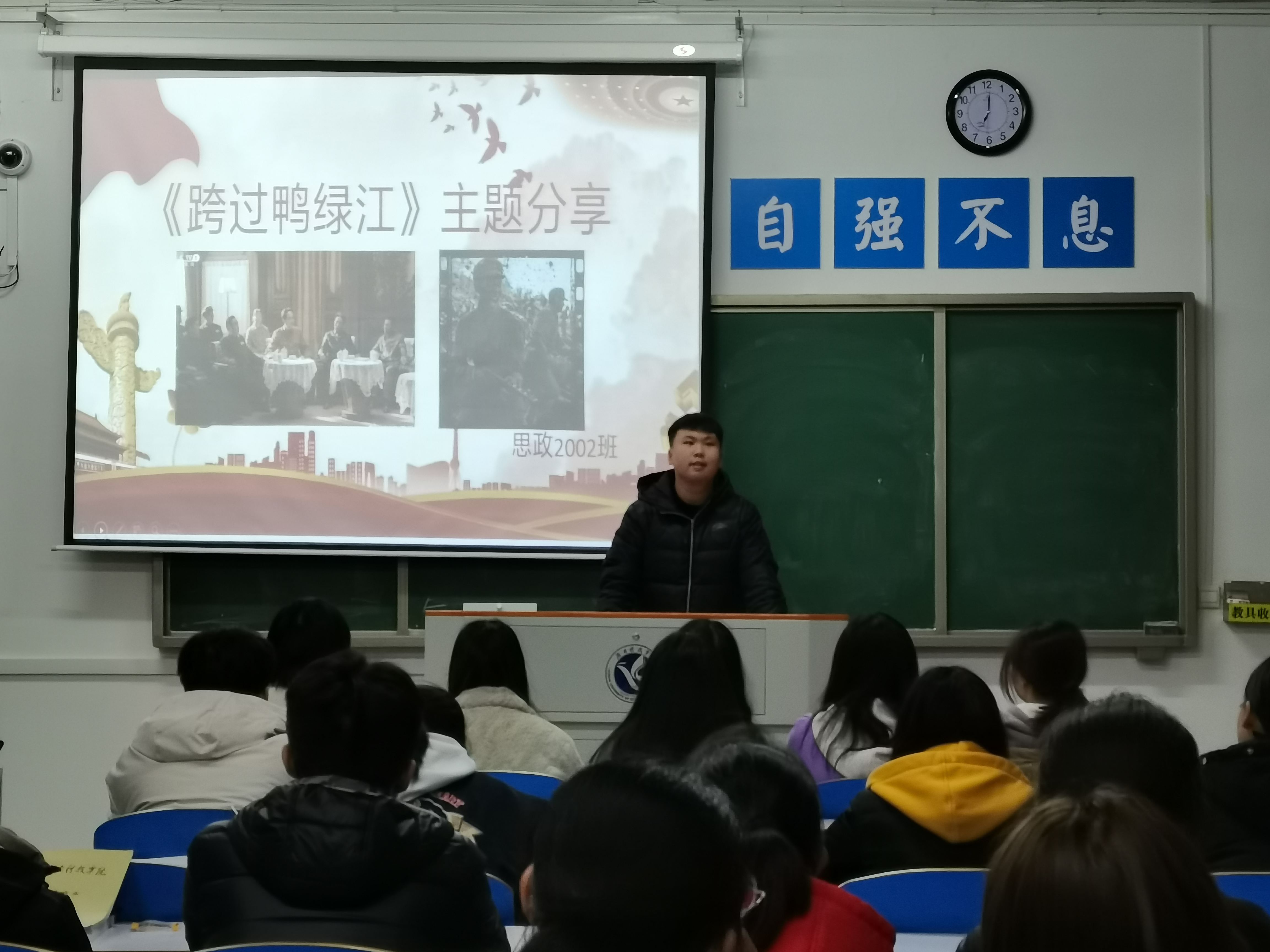 本网讯(通讯员 谢姣娇)为进一步落实同学们寒假期间观看战争史诗剧《跨过鸭绿江》的成果,加深同学们对战争现实意义的理解以及对抗战英雄的敬仰之情,培养同学们的爱国主义情怀,我院举行了以《跨过鸭绿江》为主题的分享交流活动。