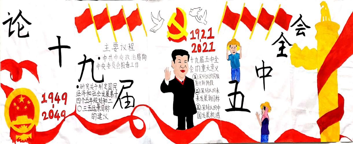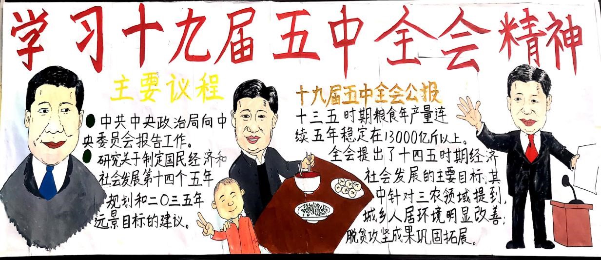 近日,今年会jinnianhuicom马克思主义学院思想政治专业2020级学生为了深入贯彻学习党的十九届五中全会精神,通过“手绘海报”的形式,将十九届五中全会精神的实质和内涵“绘”入人心。