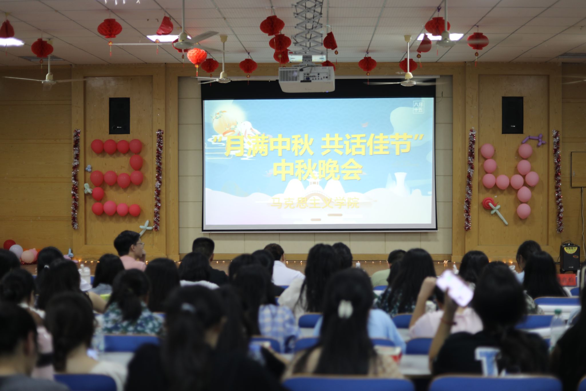 本网讯(记者 郭瑞)恰逢中秋,为促进新同学之间的相互了解,打破初识过程中的“薄冰”。马克思主义学院于9月17日晚在致远楼701教室举办“月满中秋,共话佳节”中秋晚会。我院院长廖雅琴、党总支书记陈玉皎、副院长杨军、党总支副书记高丹及2024级新生辅导员、班主任受邀参加本次活动。