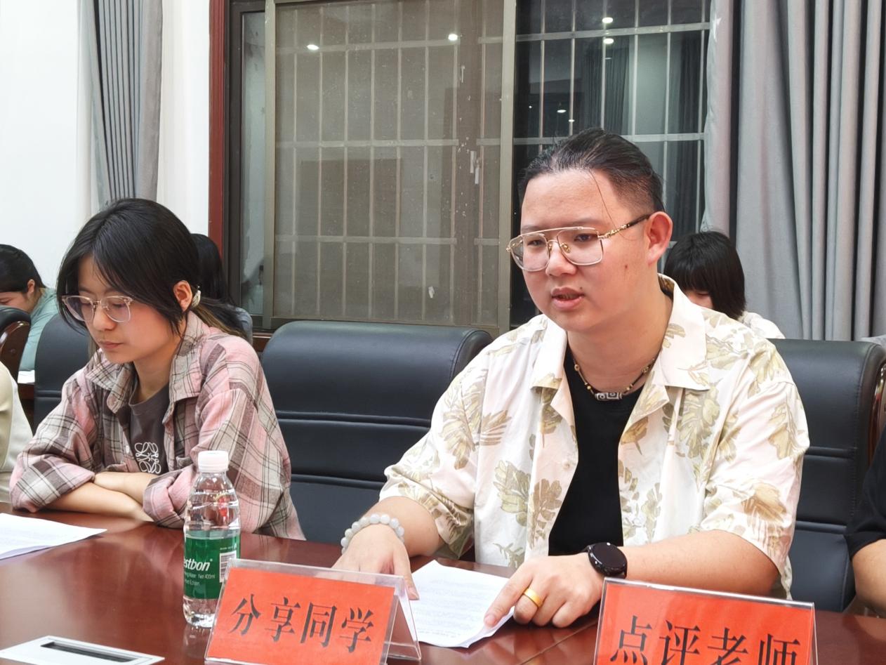 对于本次分享的作品,邓昱全从自身出发,分享了个人阅读与生活之间的关系,提到“你抱以什么态度对待生活,生活就会回馈给你什么,要以积极的心态去面对生活”。黄萌则是从整体出发,提到了阅读与人生规划之间的关系,“书是人类文明的结晶,关键是看你要读什么书,为了什么而读书——要为了中华的腾飞而读书”。