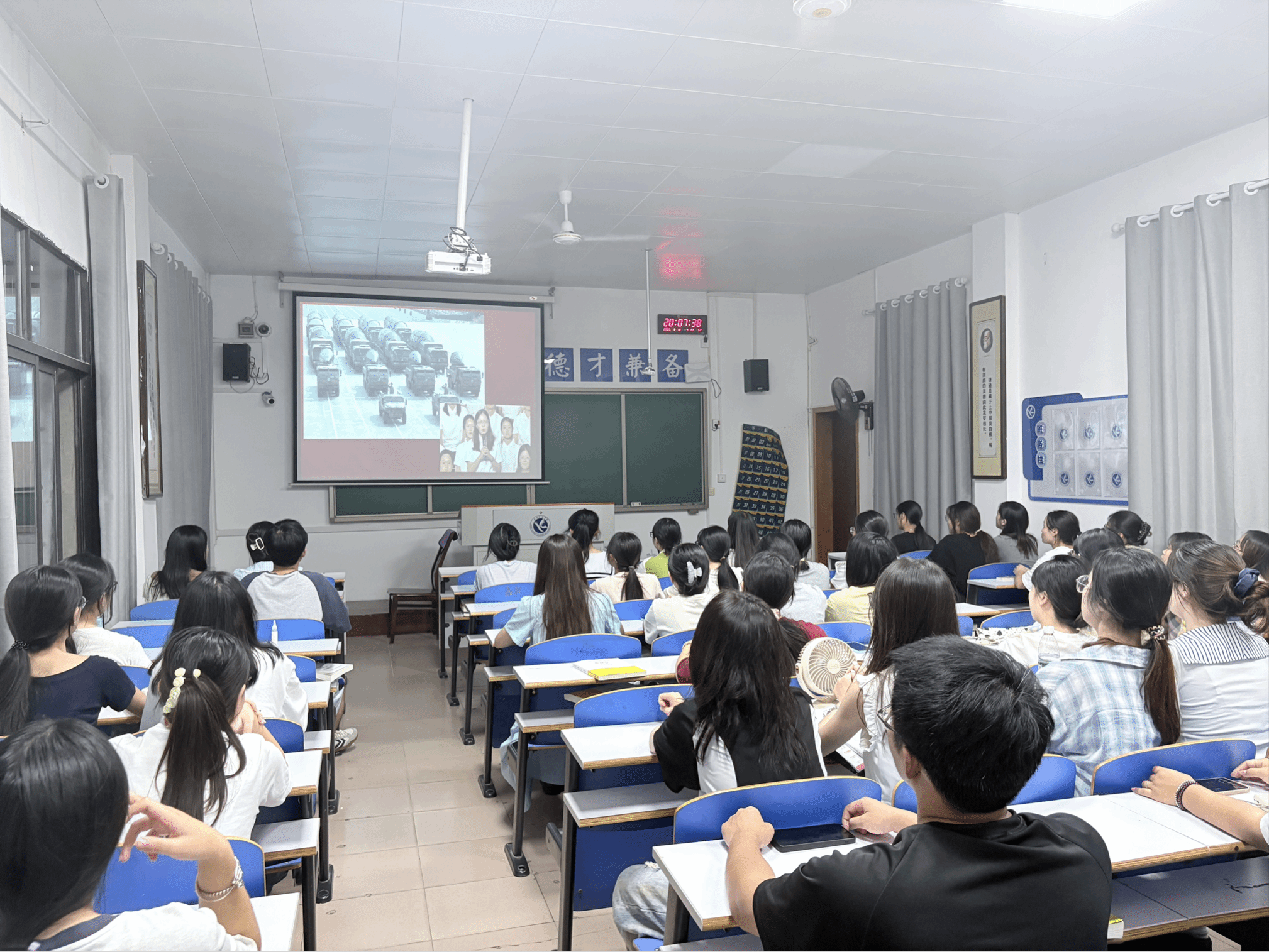 本网讯(记者 李嘉瑶)为纪念中国人民抗日战争暨世界反法西斯战争胜利80周年,引导学生弘扬伟大抗战精神,厚植爱国情怀。9月18日晚,马克思主义学院组织各班观看“奋斗青春号”大思政课堂特别节目《烽火学脉》。