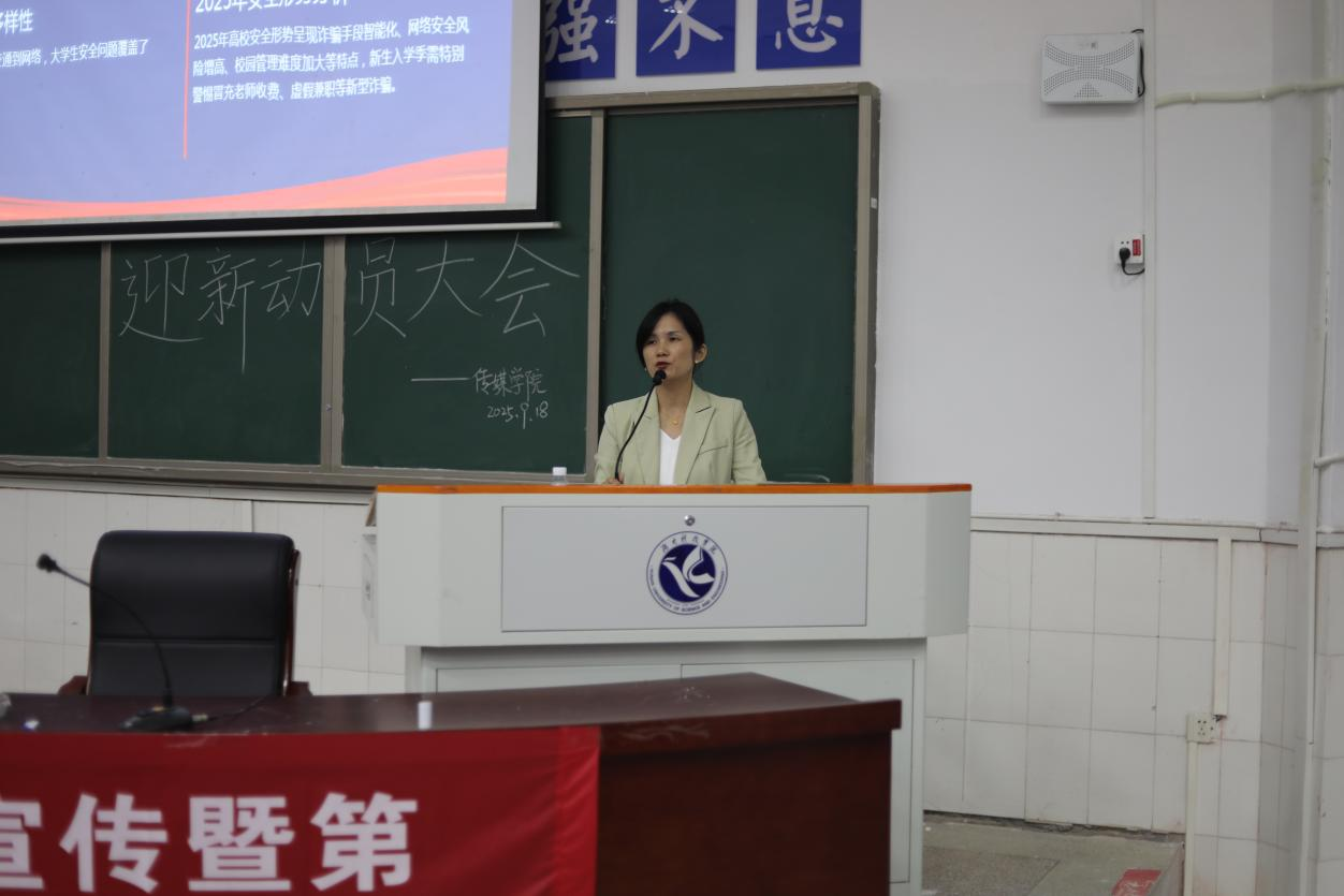 在健康知识铺垫的基础上,讲座切入到校园安全指导环节。宿舍作为新生日常居住的重要场所,宿舍安全与用电管理是讲座重点内容,胡晓提醒新生要严格遵守宿舍用电规定,不使用违规电器;财务安全同样备受关注,讲座着重强调要妥善保管个人财物,切勿随意透露相关信息,警惕各类诈骗行为。
