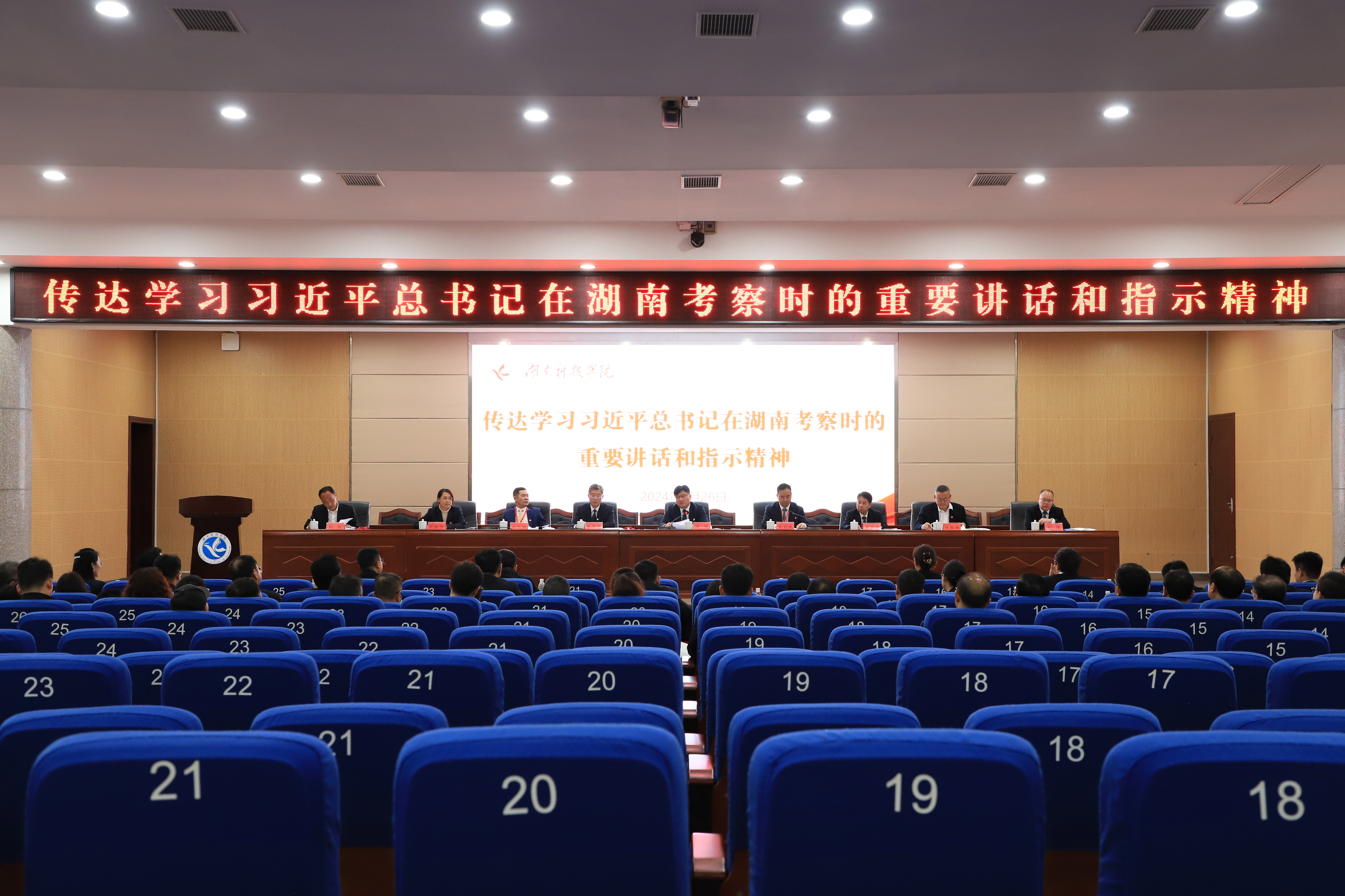 会议指出,习近平总书记在今年全国两会后首次考察调研就来到了湖南,并在湖南主持召开新时代推动中部地区崛起座谈会,充分体现了习近平总书记对湖南的高度重视和亲切关怀。要将学习宣传贯彻习近平总书记重要讲话和指示精神作为学校当前和今后一个时期的首要政治任务,在学深悟透中抓好贯彻落实。