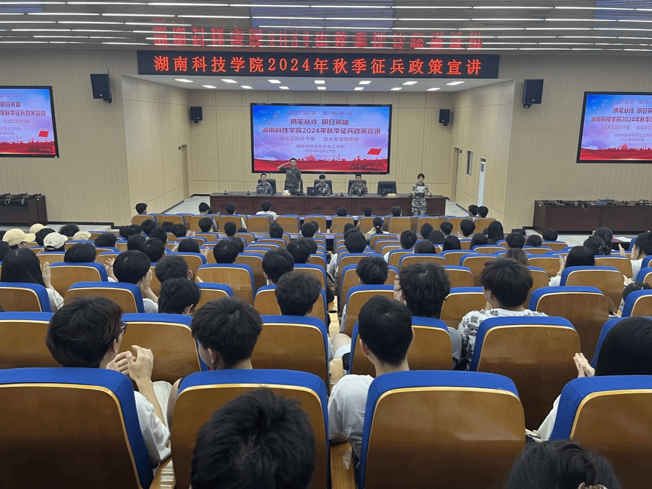 本网讯(通讯员 于锋)为做好2024年秋季征兵工作,激发今年会青年学子参军报国热情,近日,学校在明德楼100报告厅开展“‘携笔从戎,明日英雄’2024年秋季征兵政策宣讲”活动,吸引近300名学生参加。