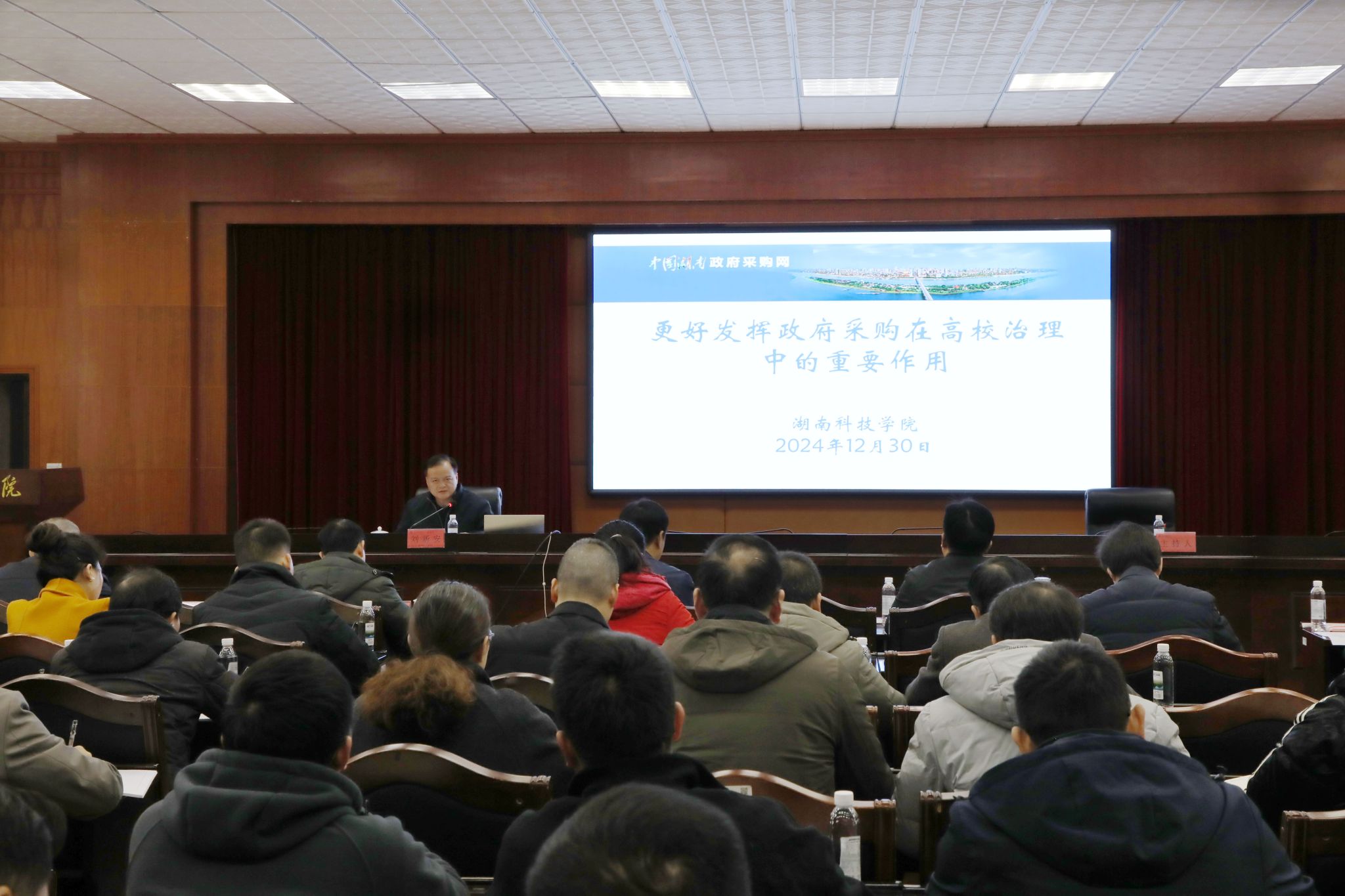 本网讯(记者 马天天)12月30日上午,学校举行2024年第12次党委理论学习中心组(扩大)集体学习暨政府采购业务培训。全体校领导、党委委员,全体中层正职(含主持工作的副职)、校属各单位分管采购工作的副职、教学学院副院长和业务经办人员参加。会议由校党委书记李钢主持。