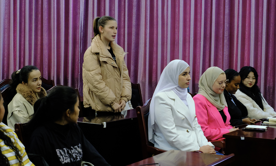 现场气氛融洽而热烈。同学们分别进行了自我介绍,并分享了自己的兴趣爱好。他们希望学习知识、结交朋友,通过中国文化和语言学习,努力成为中外文化交流的实践者和传播者。