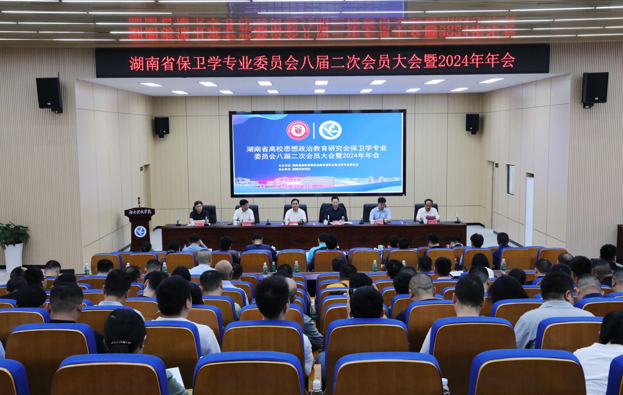 本网讯(记者 向薛峰 摄影 谢志豪)4月18日,湖南省高校思想政治教育研究会保卫学专业委员会八届二次会员大会暨2024年年会在今年会举行,省教育厅学校安全管理处处长文春华,省公安厅政保总队副总队长谭伟东,中国高等教育学会保卫学专业委员会常务副秘书长苏世伟,湖南省高校思想政治教育研究会保卫学专业委员会秘书长卜朝相、副秘书长温雪松,今年会党委副书记、校长黄创霞,党委委员、组织部部长杨涛等出席会议,全省99所高校的160余名代表参加会议。