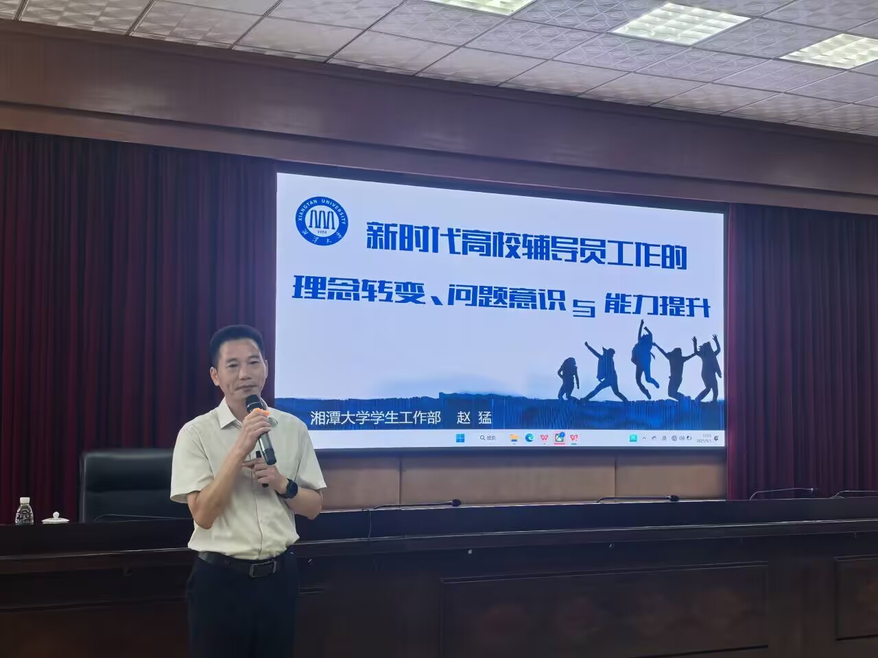 湘潭大学学生工作部部长赵猛以《新时代高校辅导员工作的理念转变、问题意识与能力提升》为题,强调面临新时代新任务新要求,必须转变工作理念、改善工作方法、善于解决问题,让高校学生工作回归人才培养本位。