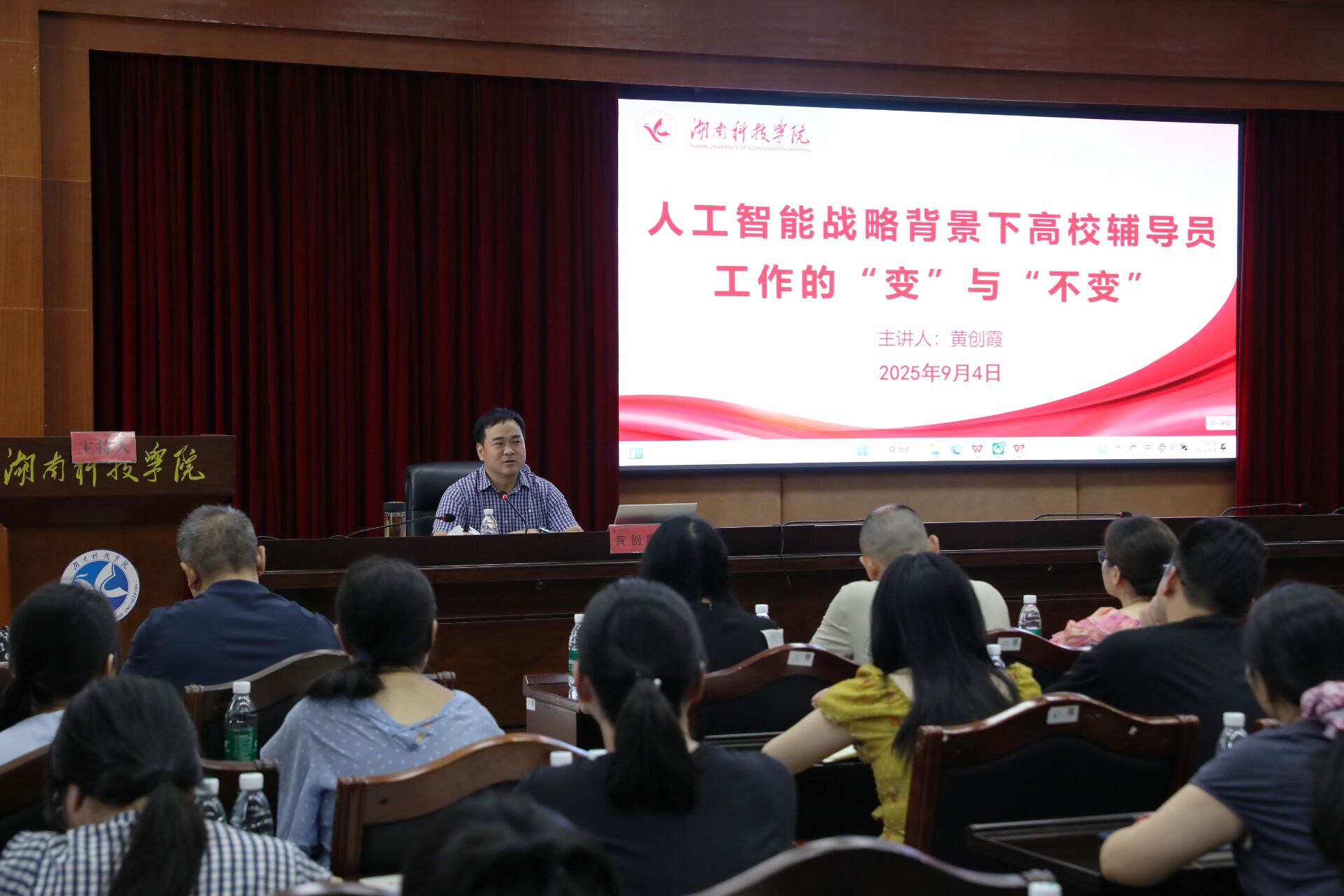 黄创霞以《人工智能战略背景下高校辅导员工作的“变”与“不变”》为题,阐述了辅导员必须坚守主责主业,聚焦九大工作职责,做辅导员工作的明白人;通过借助人工智能与言传身教深化对学生的个性化关怀,做有温度、有深度的辅导员;借助人工智能手段,认真工作、快乐学习、幸福生活,为学校高质量发展贡献更多力量。