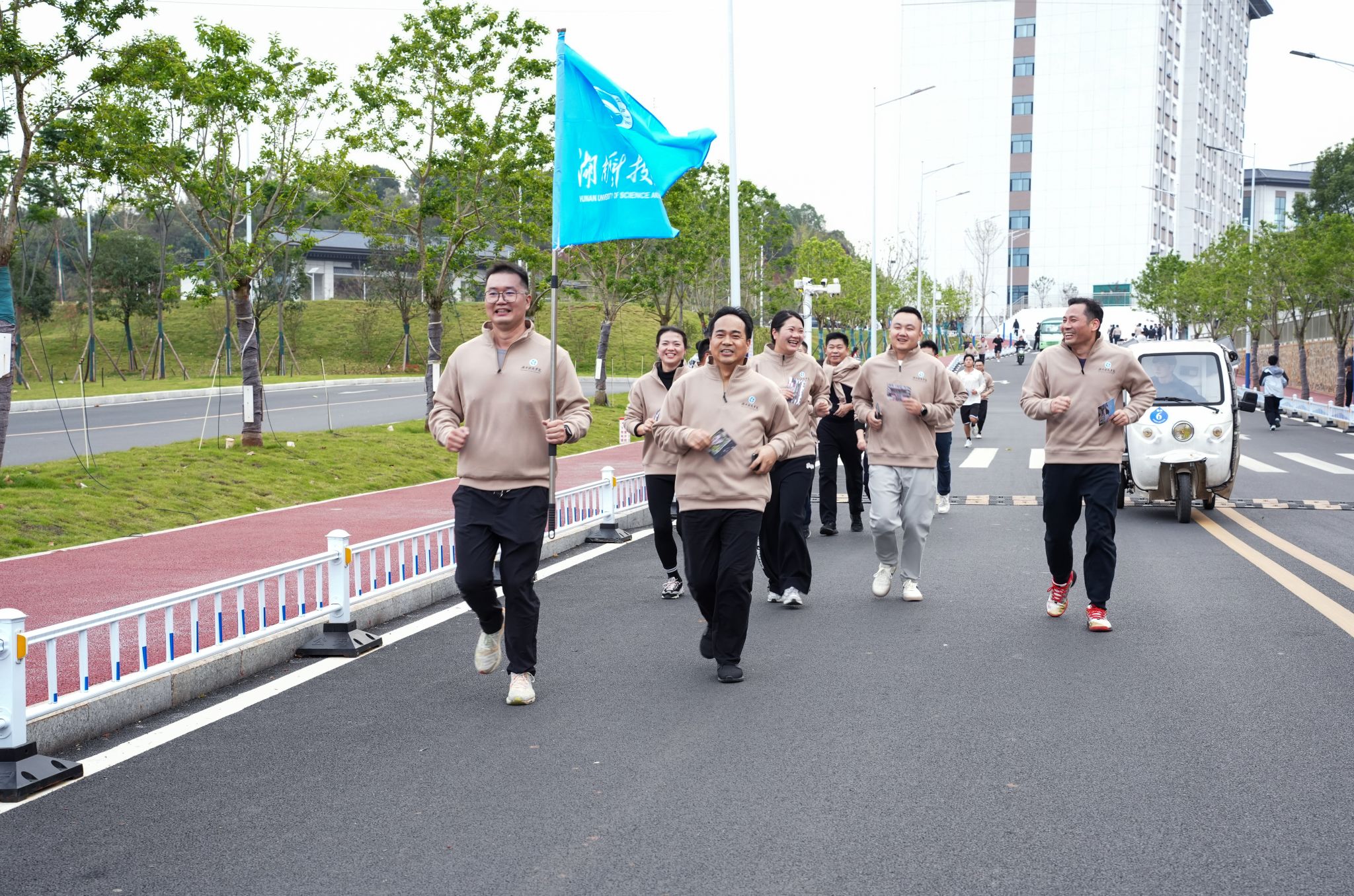 在环校跑过程中,参赛选手们相互鼓励、奋勇向前,展现出昂扬向上的精神面貌。沿途设置的志愿服务点也为参赛选手提供了暖心支持,加油声、欢呼声此起彼伏,营造出热烈的氛围。