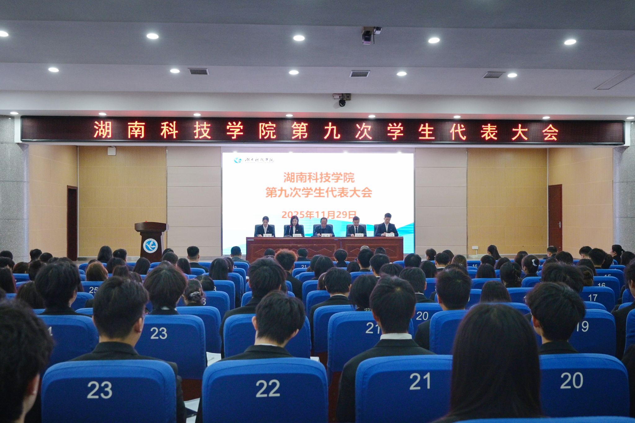 随着校歌《潇湘之歌》奏响,学校第九次学生代表大会正式落下帷幕。