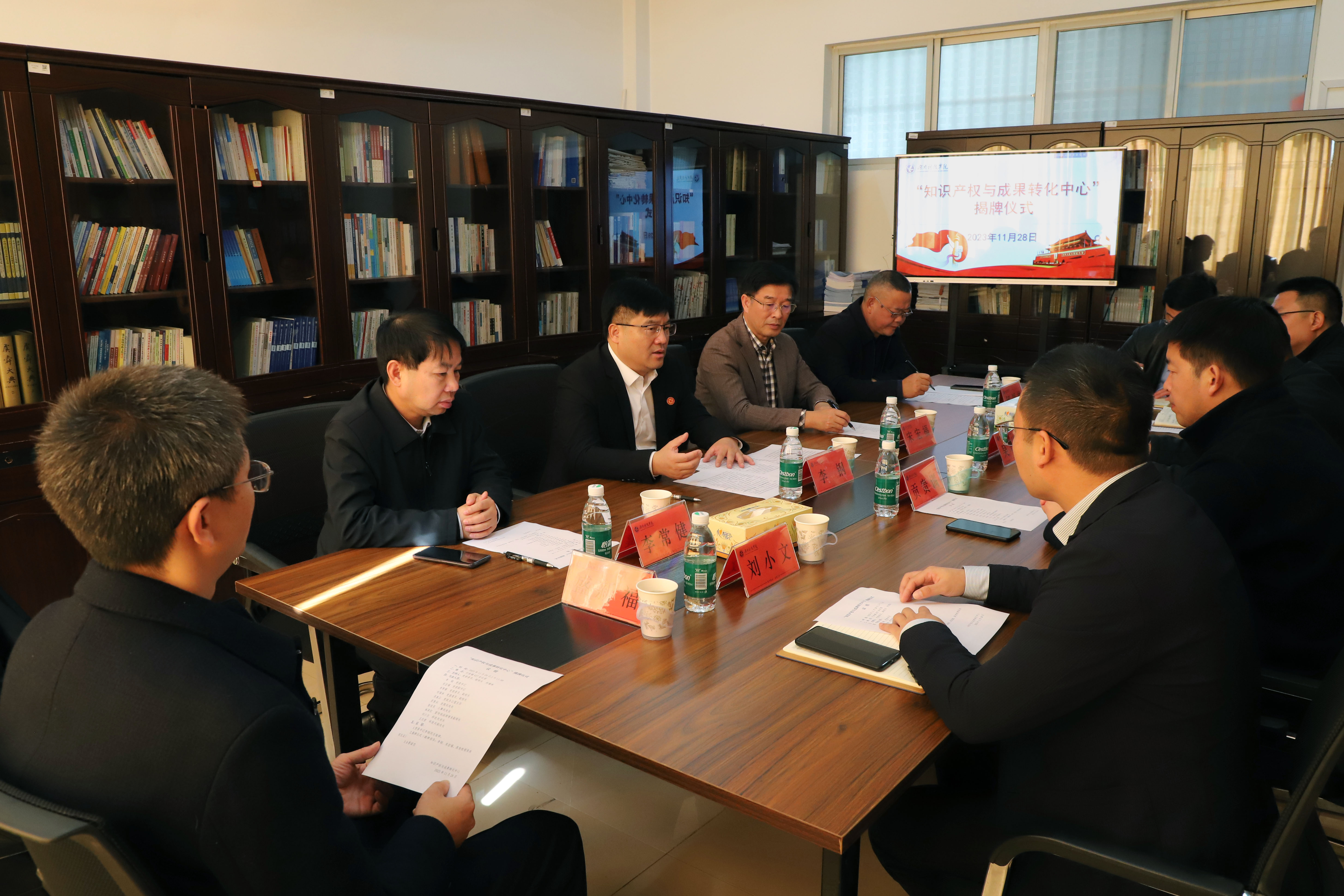 本网讯 11月28日上午,学校“知识产权与成果转化中心”揭牌成立,党委书记李钢,党委副书记宋宏福,党委委员、副校长李常健、何福林参加揭牌仪式,学校党政办、党委宣传部、发规处、人事处和科技处相关负责人参加。