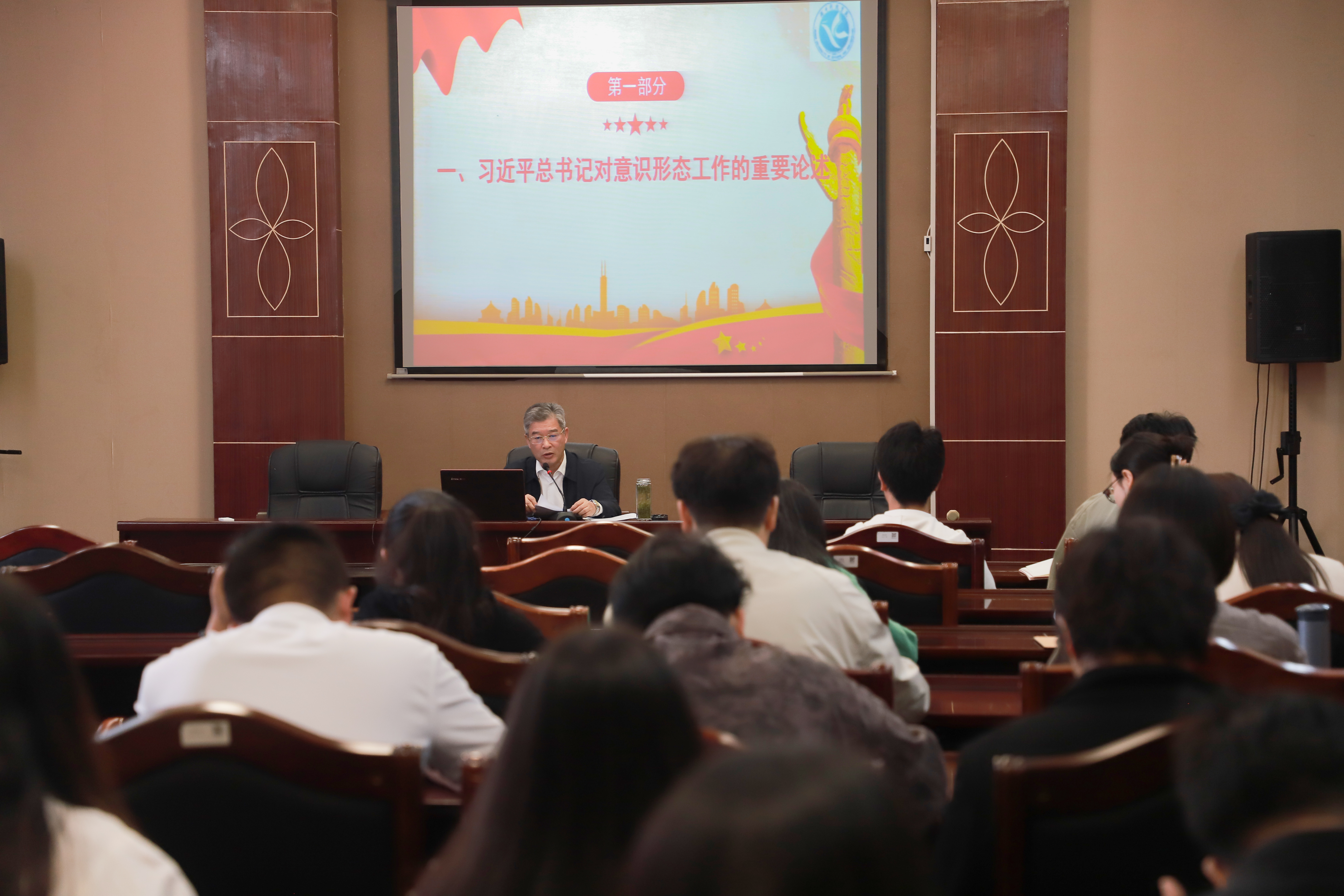 宋宏福指出,在刚刚结束的全国宣传思想文化工作会议上,正式提出和系统阐释了习近平文化思想,强调要着力建设具有强大凝聚力和引领力的社会主义意识形态。高校是党的意识形态工作的重要领域和前沿阵地,在高校意识形态工作中,广大教师既是实施意识形态教育的工作主体,也是意识形态工作的重点对象。他从“习近平总书记对意识形态工作的重要论述”“目前我国意识形态领域面临的形势与风险”“目前高校意识形态的情况和面临的风险”“高校如何防范和化解意识形态风险”等四个方面出发,结合当前学校教育教学实际和自身工作实践,运用大量生动的热点案例,为学校新进教师作了一堂精彩纷呈、“干货”满满的讲座。