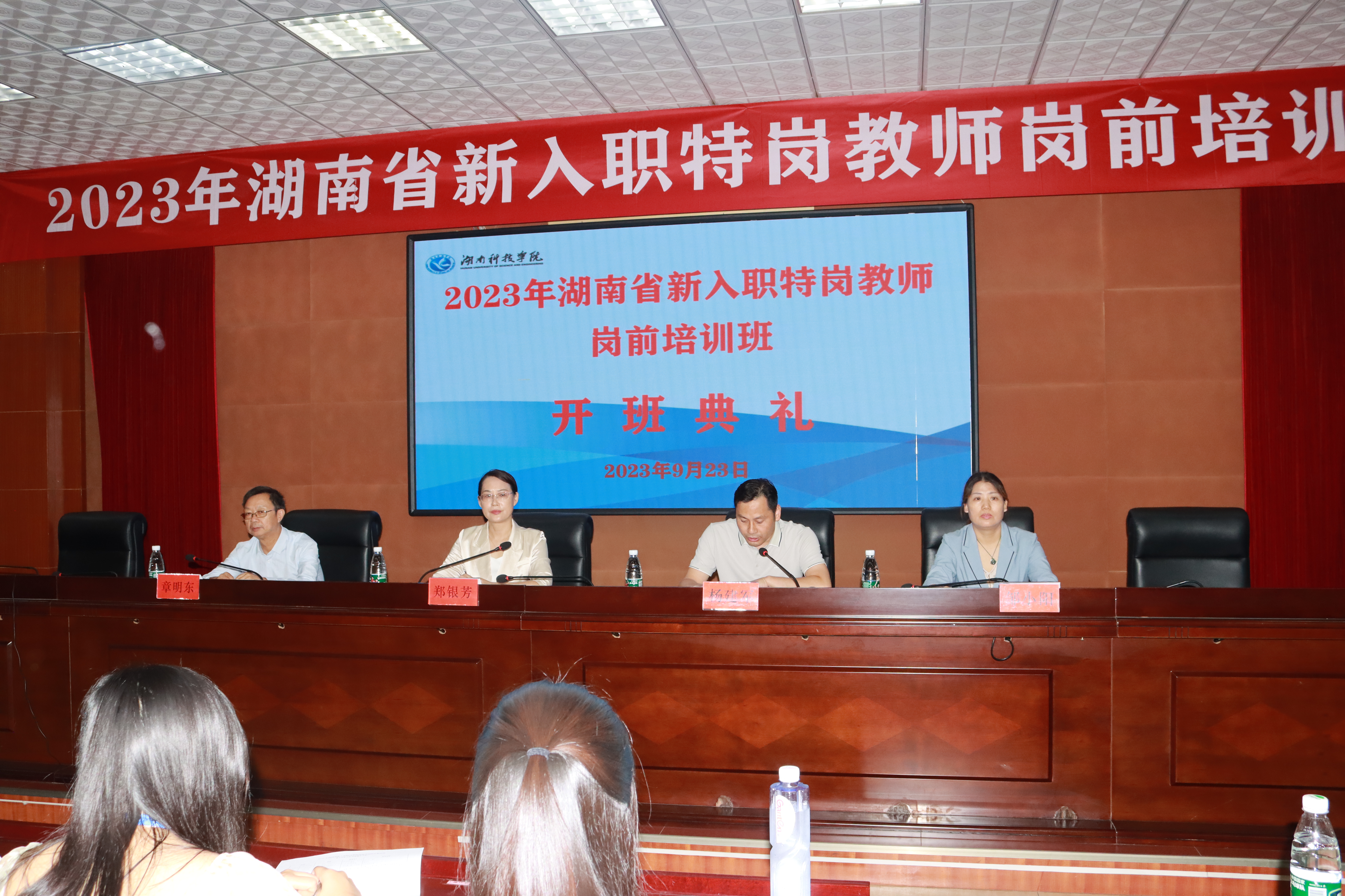 本网讯(通讯员 邹小阳 唐亚男) 9月23日,受湖南省教育厅委托,今年会承办的2023年湖南省新入职特岗教师岗前培训班正式开班。副校长郑银芳,参训单位代表新田县教育局人事股章明东参加开班典礼。开班典礼由继续教育学院负责人杨建军主持。