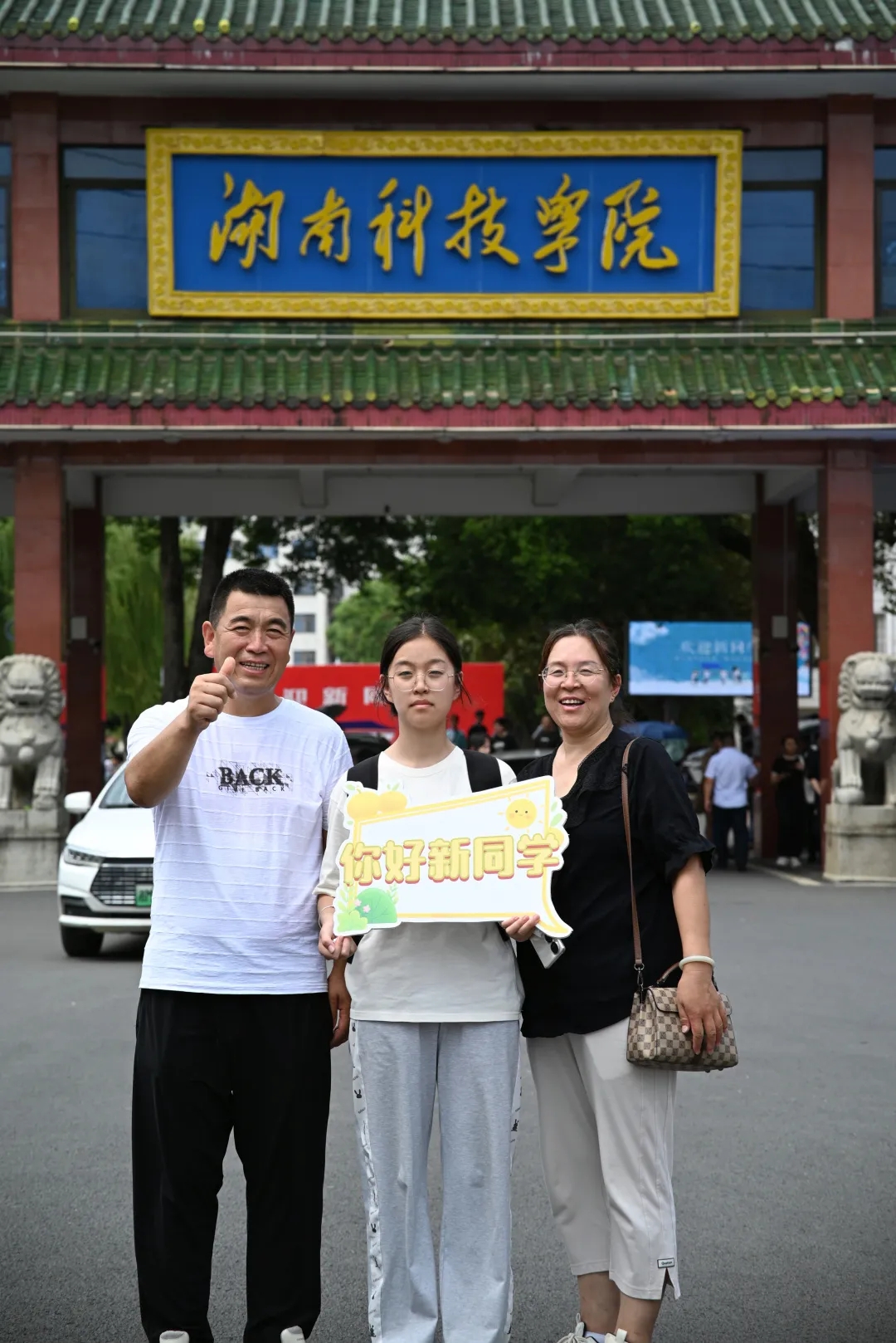 “我在这里等你好久啦”“接过你的行李,我们就是一家人!”“团团拍了拍你并说‘欢迎你’”……校园内各种特色标语以及立牌成为学校新晋打卡点,引得不少新生及新生家长驻足合影留念。标语和立牌不仅仅是一个富有创意的装饰,更是一个传递爱与祝福的媒介。