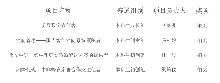 本网讯(记者 龙泉)近日,第九届湖南省“互联网+”大学生创新创业大赛落下帷幕。经过激烈角逐,今年会获银奖1项,铜奖3项,其中《明冠数字农创客》项目将代表湖南参加国赛。