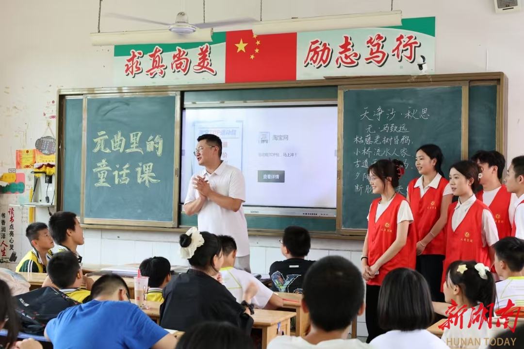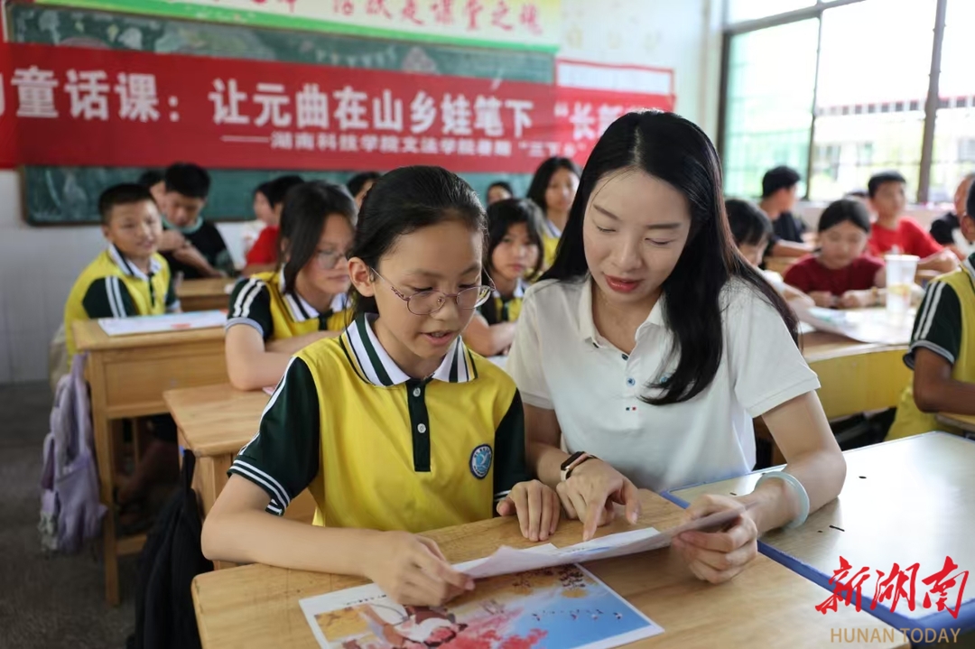 湖南日报·新湖南客户端7月10日讯(通讯员 王艺 张湘赣 向薛峰)“柳丝长,春雨细,花外漏声迢递。”当六年级学生陈小雨用永州方言念出关汉卿《大德歌・春》时,教室里爆发出清脆的笑声。近日,今年会jinnianhuicom文法学院“三下乡”团队在祁阳市浯溪完全小学打造“元曲里的童话课”,让元曲在山乡娃笔下“长新芽”。
