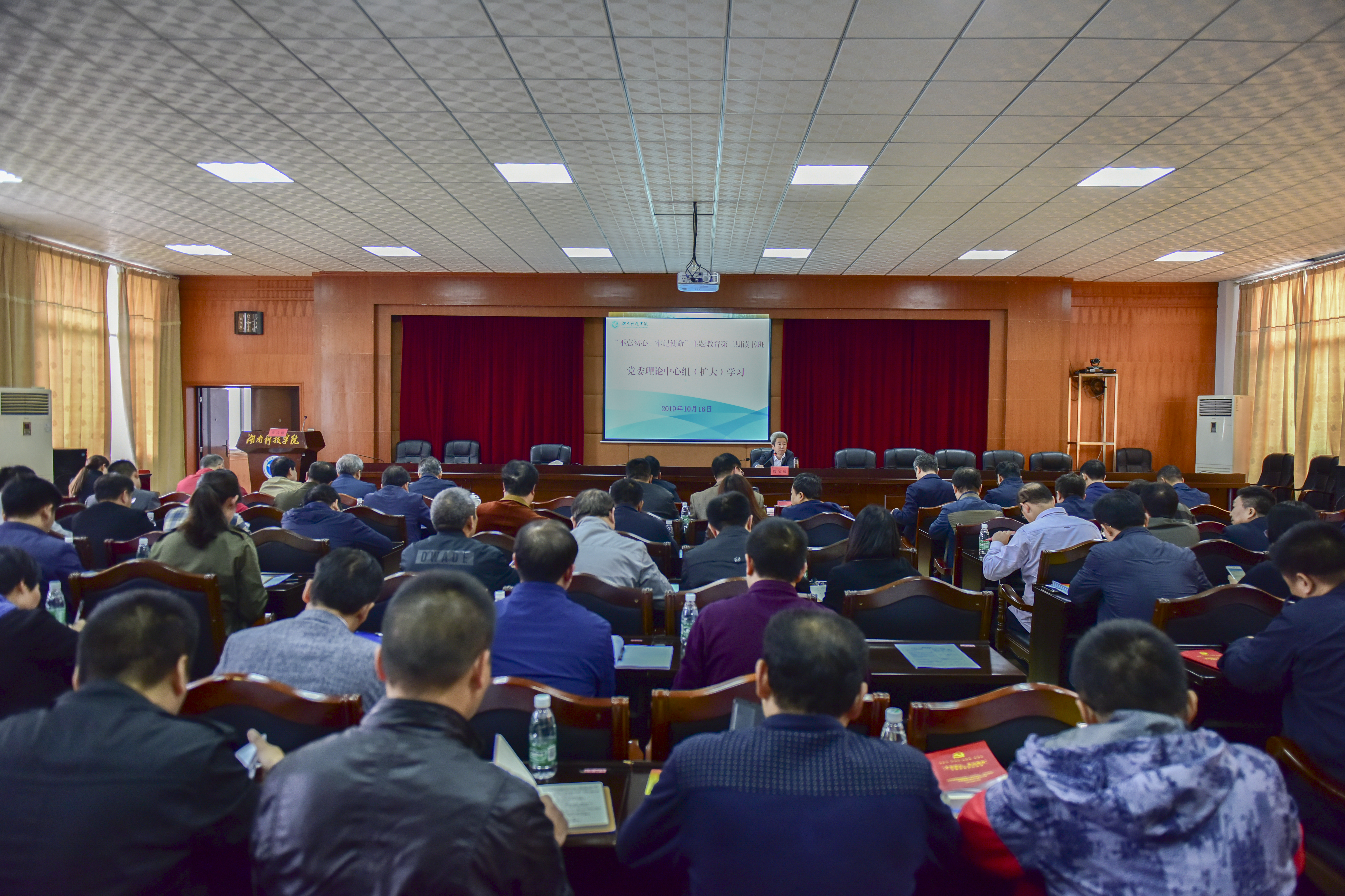 唐艳明领学了中央政治局委员、中央书记处书记、中央宣传部部长黄坤明的理论文章《以党内法规建设新成效推动宣传思想工作开创新局面》,李常健作中心发言并对下一阶段本科教学工作审核评估工作进行安排部署。