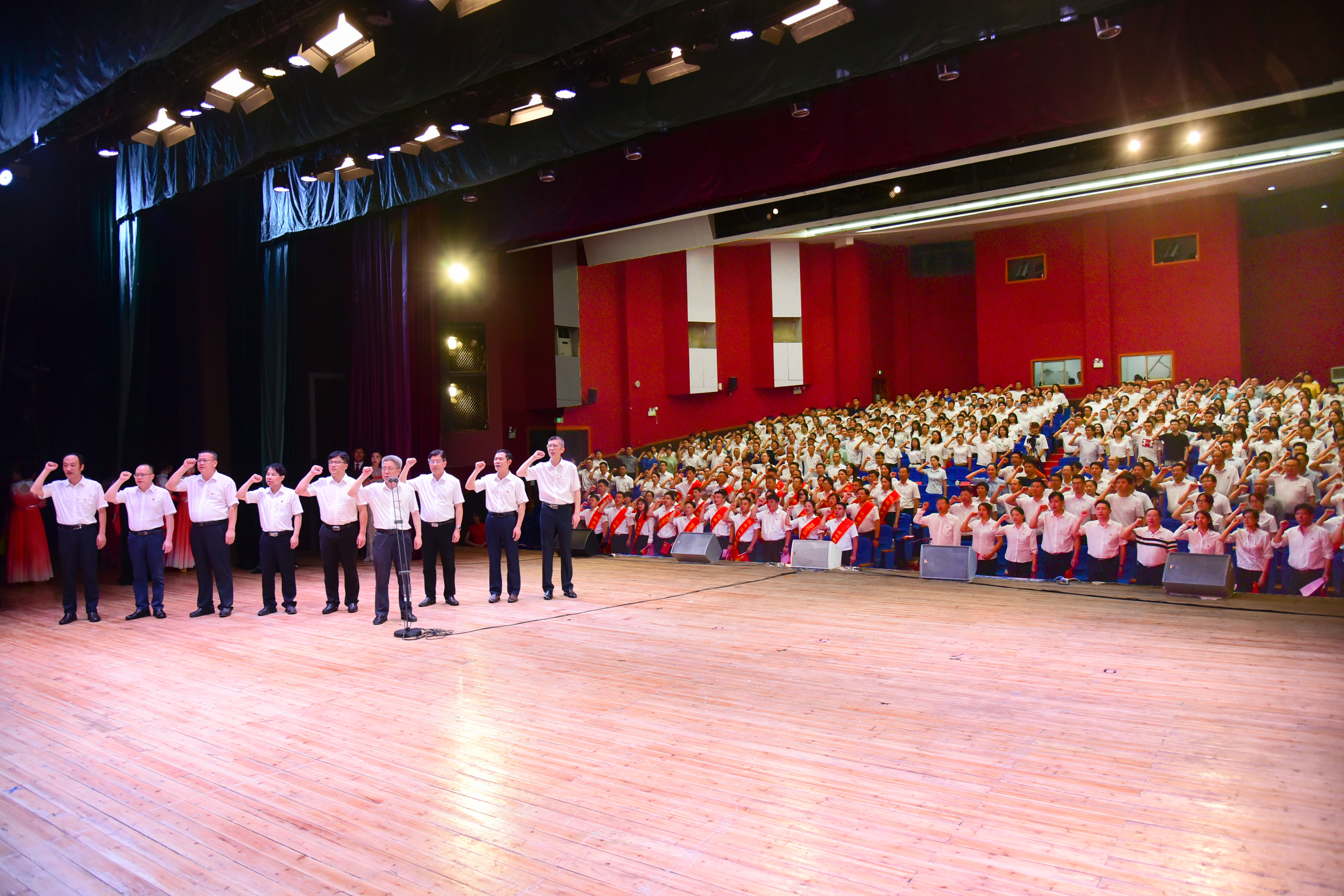 本网讯 在中国共产党百年华诞即将到来之际,6月30日晚,学校隆重举行庆祝建党100周年文艺晚会暨七一表彰大会。大会向“光荣在党50年”的老同志代表颁发纪念章,表彰了一批为学校事业发展作出突出贡献的先进集体和先进个人,激励和鼓舞广大师生党员不忘初心、牢记使命,砥砺前进、奋发有为。