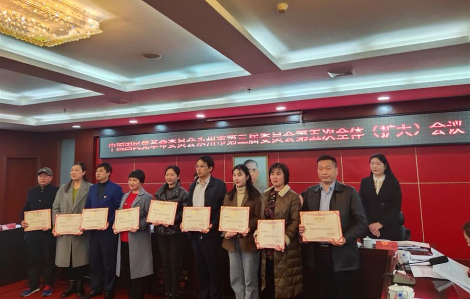 本网讯 3月21日上午,民革永州市第三届委员会第五次全体(扩大)会议在冷水滩召开,会议表彰了先进。民革今年会jinnianhuicom支部荣获先进支部,这也是民革永州市委2013年开展争先创优以来民革校支部第五次荣获先进支部。陈义勇荣获优秀党员,方芳荣获优秀党务工作者,民革校支部提交的调研报告获2020年度永州市政协好调研二等奖。