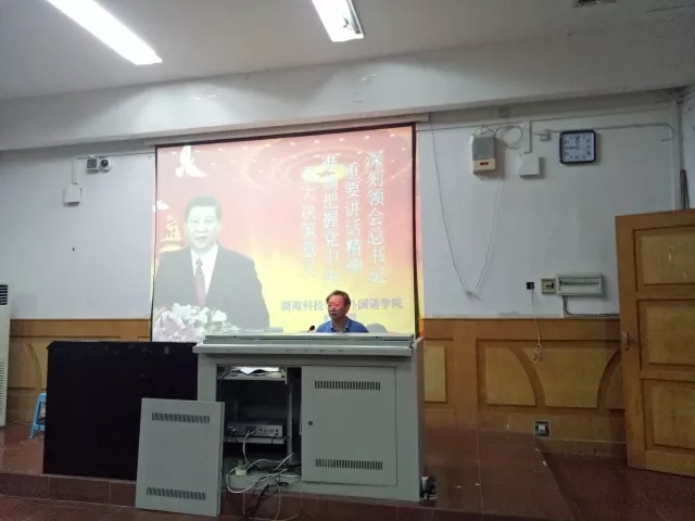 本网讯(通讯员 田金凤)5月24日晚,外国语学院院长、党总支副书记欧华恩在博雅楼西二为入党积极分子讲授题为“深刻领会总书记重要讲话精神,准确把握党中央重大决策意义”的党课。