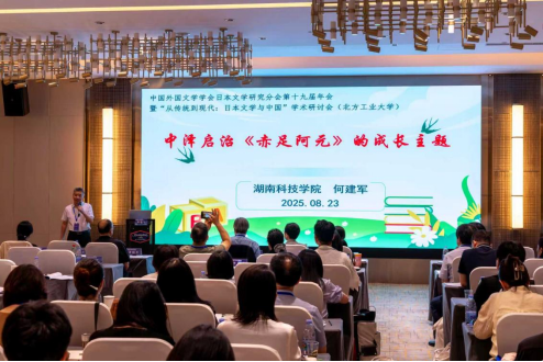 本网讯(通讯员 宋琳)为讲好中国故事,阐明人类命运共同体理念,推动我国日本文学研究服务国家发展战略,中国外国文学学会日本文学研究分会于2025年8月22日至24日在北京主办了日本文学研究分会第十九届年会暨“从传统到现代:日本文学与中国”学术研讨会。本次年会设主旨发言环节和“东传日本的中国经典研究”、“日本汉学与日本中国学研究”、“日本汉文学研究”、“中日文学的现代转型”、“日本文学现代性研究”、“中日近现代文学关系研究”等十四个平行分论坛。来自国内外百余所高校与科研机构的学者与研究生参加了本次研讨会。他们积极发表最新的研究成果,交流前沿学术资讯,探讨文学研究的新路径、新方法。我院何建军教授应邀作了题为《中泽启治<赤足阿元>的成长主题》的主旨发言,从社会的成长和心理的成长两个方面探讨了《赤足阿元》的成长主题,指出中泽启治具有较自觉的历史意识,在作品中把个人成长的私人体验与日本民族战后共同经历的问题联系在一起。中国外国文学学会日本文学研究分会年会每两年举办一届,这是何建军教授继第十八届年会之后再次在大会上做主旨发言。