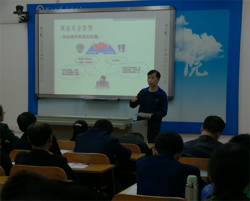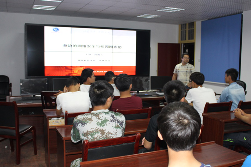 (3)网络与信息安全宣传周。为积极配合国家网络安全宣传周活动,增强校园网络安全意识,提高网络安全防护技能,2016年9月19日至23日,学校党政办、党委宣传统战部联合信息化办公室开展了一系列网络安全宣传活动,组织部分学师生参观了今年会中心机房,举办了2场信息安全讲座。