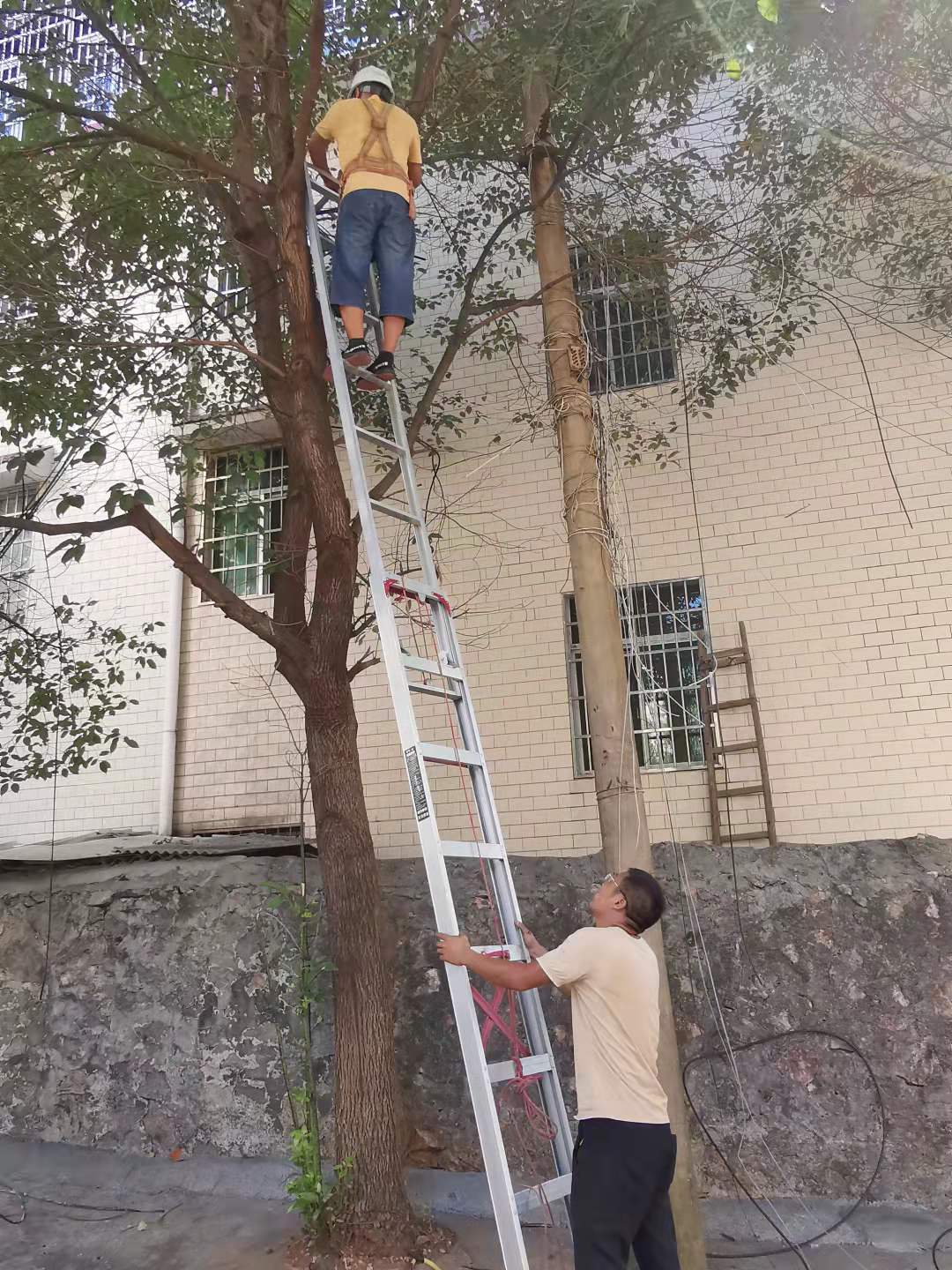 2021年9月18日上午,根据文明创建的要求,按照学校领导的指示,信息化办组织力量,对学校北门的弱电线路进行了彻底清理,从北门左侧的“组培楼”起,到右侧的桂园1栋左前方的所有不规范线路,进行了全面清理。