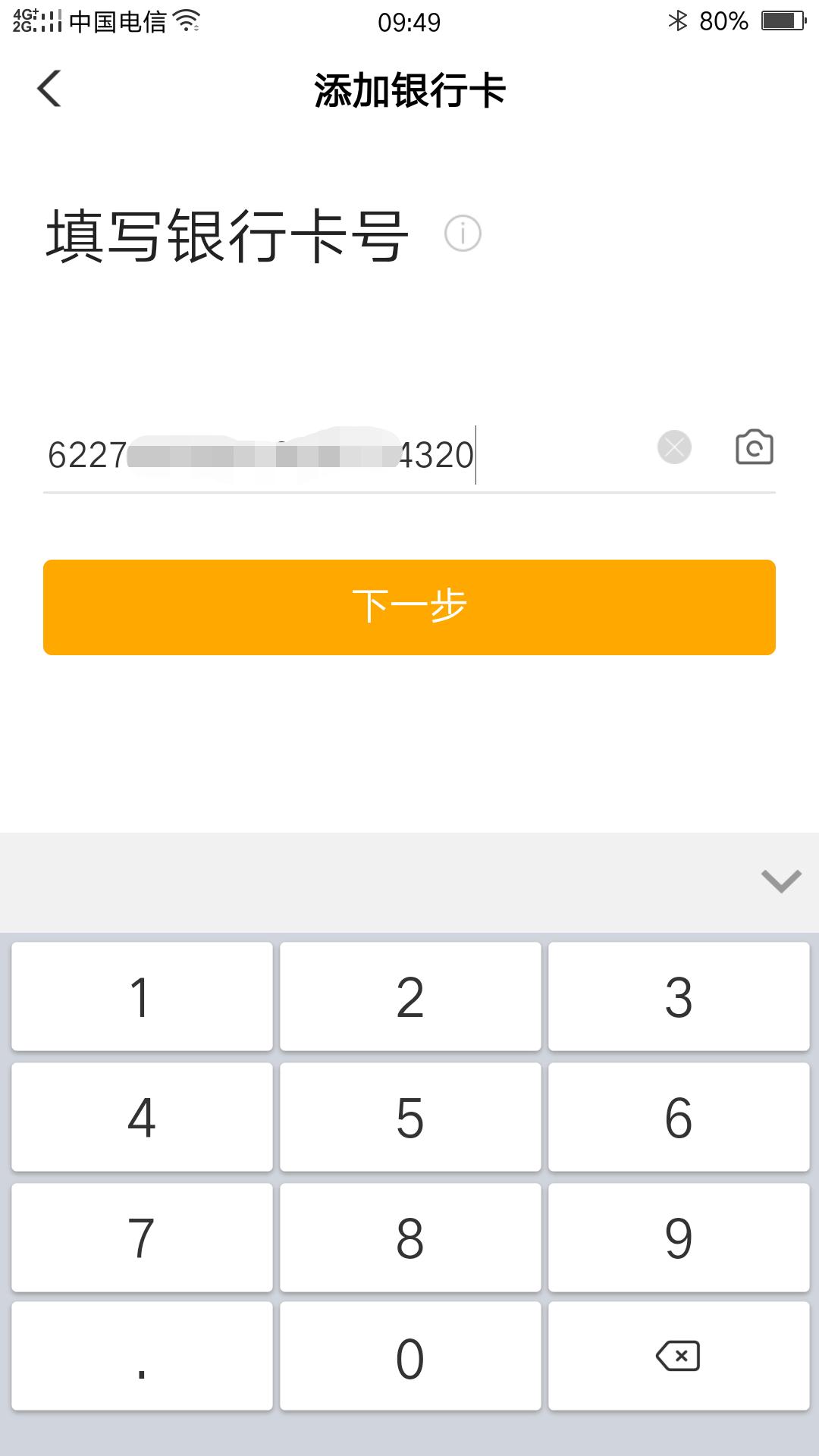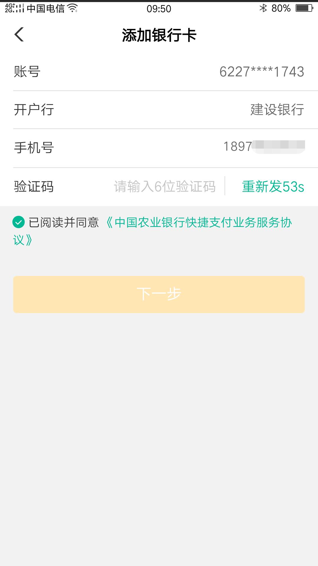 4、填写银行卡号