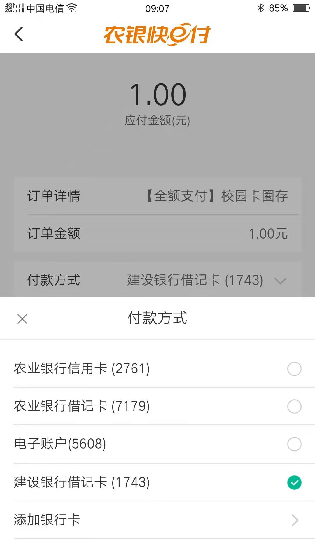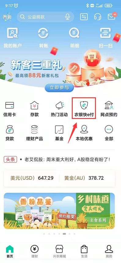 1、选农行快e付