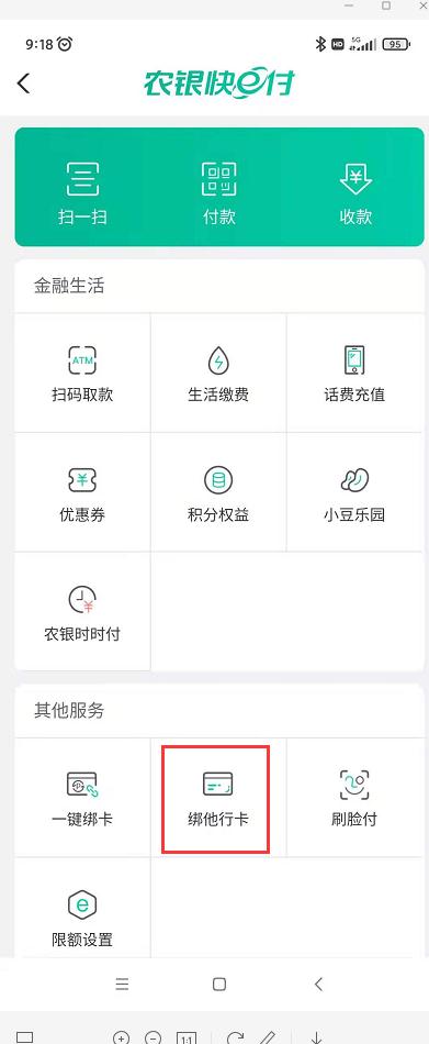 1、 在APP中绑定用户其他银行卡(绑定用户其他银行卡号,支持中行、建行、交行、工行和邮储借记卡)