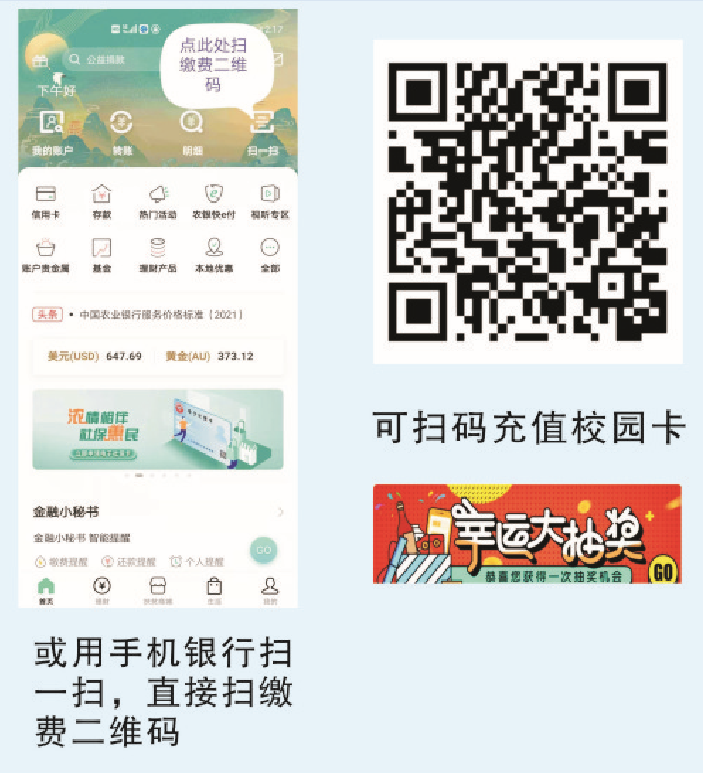 或者扫二维码直接缴费到校园一卡通