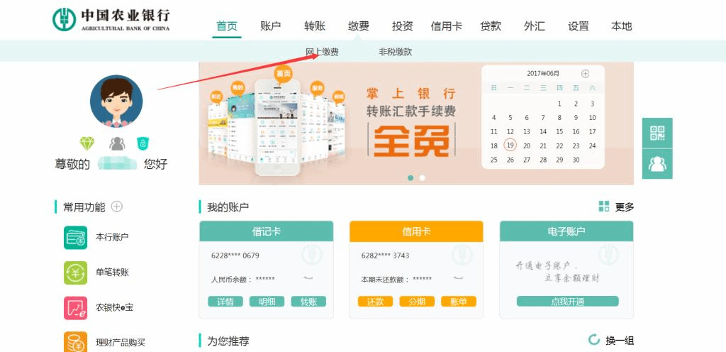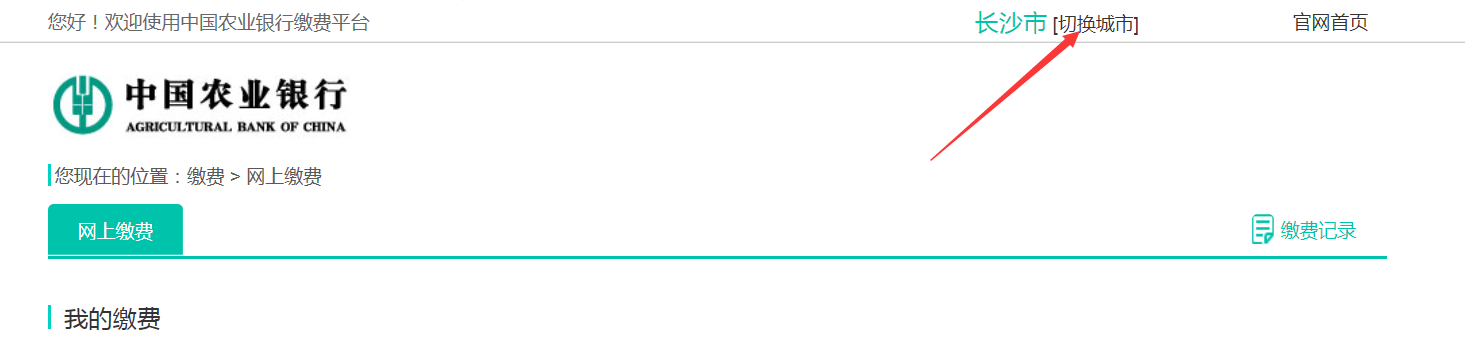 第一步:登录农业银行网站,选择缴费菜单下的网上缴费