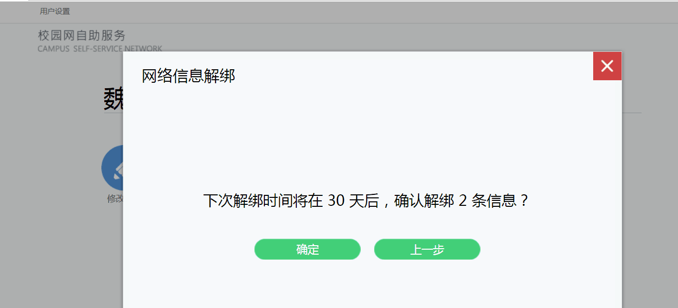 (5)完成用户终端MAC解绑。如无法上网请重新登录。