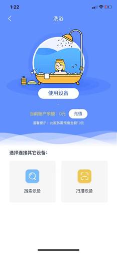 手机首页打开洗澡APP 连接设备 即可洗澡