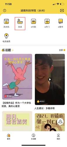 “智慧校园e卡” 可在学校范围内以下场景进行消费:洗衣机、洗澡、e付款、e开门、e借书、电表缴费