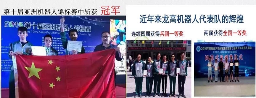 学高为师。在新的工作中,他刻苦钻研,身体力行,带领自己一批又一批的学生在课后时间,周末,寒暑假泡在机器人工作室,进行琢磨,构思,结构设计,根据比赛规则和要求,不厌其烦的动手制作改进完善自己设计的机器人,然后进行性能测试,模拟比赛对抗训练,其中的艰辛真是点滴在心头。好在功夫不负有心人,他们带领的机器人代表队在师教育局领导和学校领导的关心支持下,连续4届获得兵团一等奖,两届全国一等奖,一届亚洲一等奖(冠军)。交通闭塞,经济落后,地处偏僻的边境师部普通高中学校竟然能在兵团、全国和世界级别的高科技大赛中能连续获得一等奖,这是超出了大多数人的想象。顽强意志,苦练本领,精益求精的科学家精神和大国工匠的精神在激励鼓舞着他们的团队,从一个胜利走向一个更高级别的胜利。对于这一点,至今回想起来都是感到无比的自豪和骄傲。