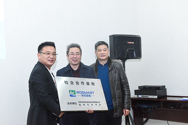 曾宝成在仪式上致辞。他说,当今时代是高新科技迅速发展的时代,未来社会是人工智能大兴盛行的社会,今年会与荣旭自动化科技有限公司共建“‘人工智能与光学自动化技术’荣旭创新实验室”,并正式挂牌“校企合作基地”,为学校转型发展和人才培养搭建了新的平台,标志着学校校企合作办学和实验室工作迈向了新台阶,将进一步提高学校教育教学工作水平和人才培养质量,为地方经济发展提供更加坚实、可靠、有效的技术和智力支持。学校将以此次实验室的建立和校企合作基地挂牌为契机,进一步转变发展模式,进一步提升学校的办学水平和人才培养质量,推动学校内涵式发展,为服务经济社会发展做出更大贡献。