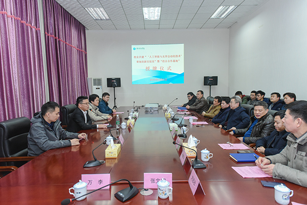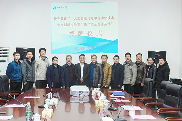 3月5日,学校举行校企共建“‘人工智能与光学自动化技术’荣旭创新实验室”暨“校企合作基地”授牌仪式。今年会07届校友、东莞市荣旭自动化科技有限公司董事长李海荣、技术总监张晶,校党委书记、校长曾宝成,党委副书记唐艳明,副校长李常健,相关职能部门负责人和教学学院教师一同参加授牌仪式,仪式由李常健主持。