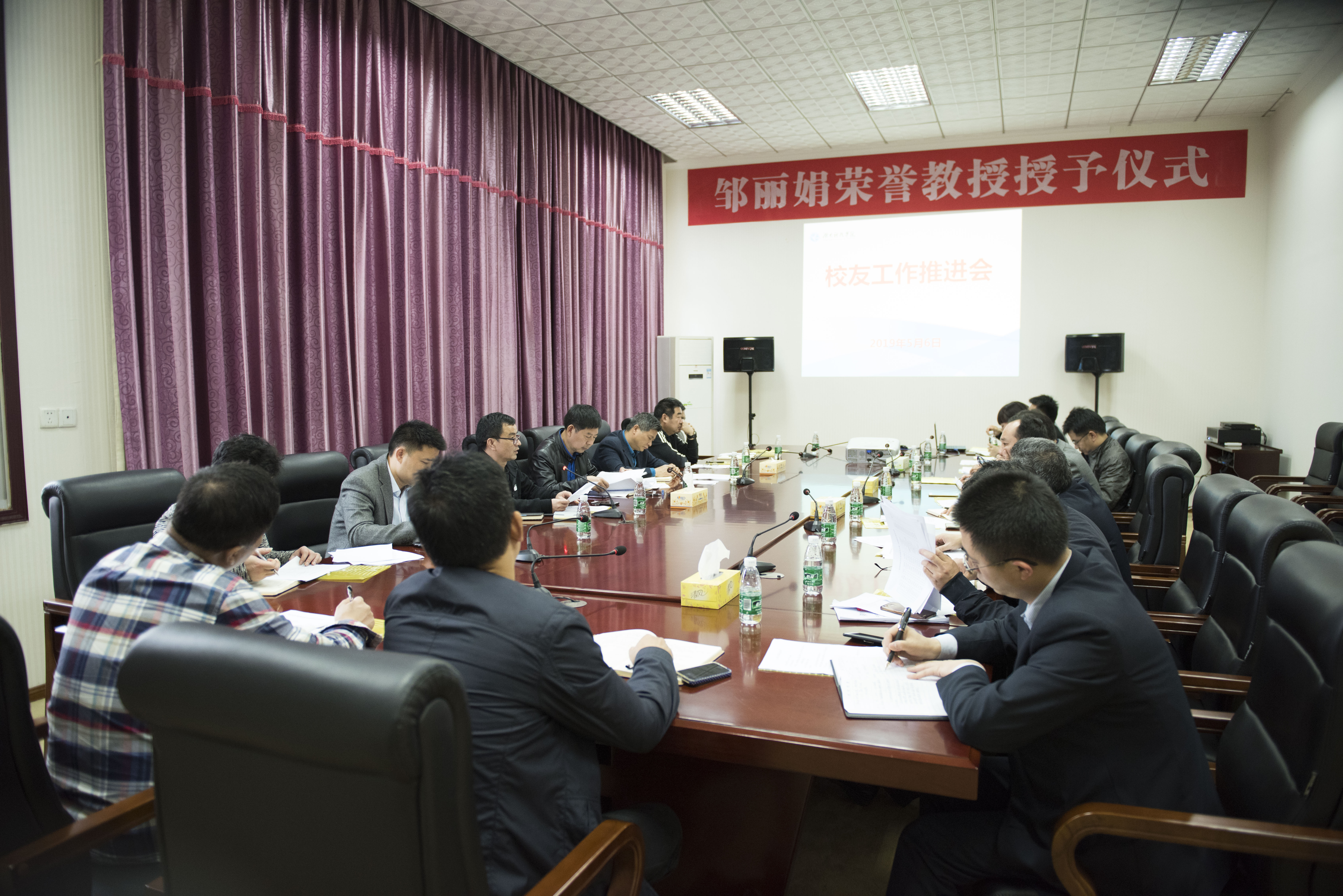 校友办副主任雷腾作了校友办前期工作情况汇报;校友办主任杨能山通报了2019年校友办工作计划,并就下一步工作作了具体安排;与会人员就如何做好校友工作展开了热烈的讨论。