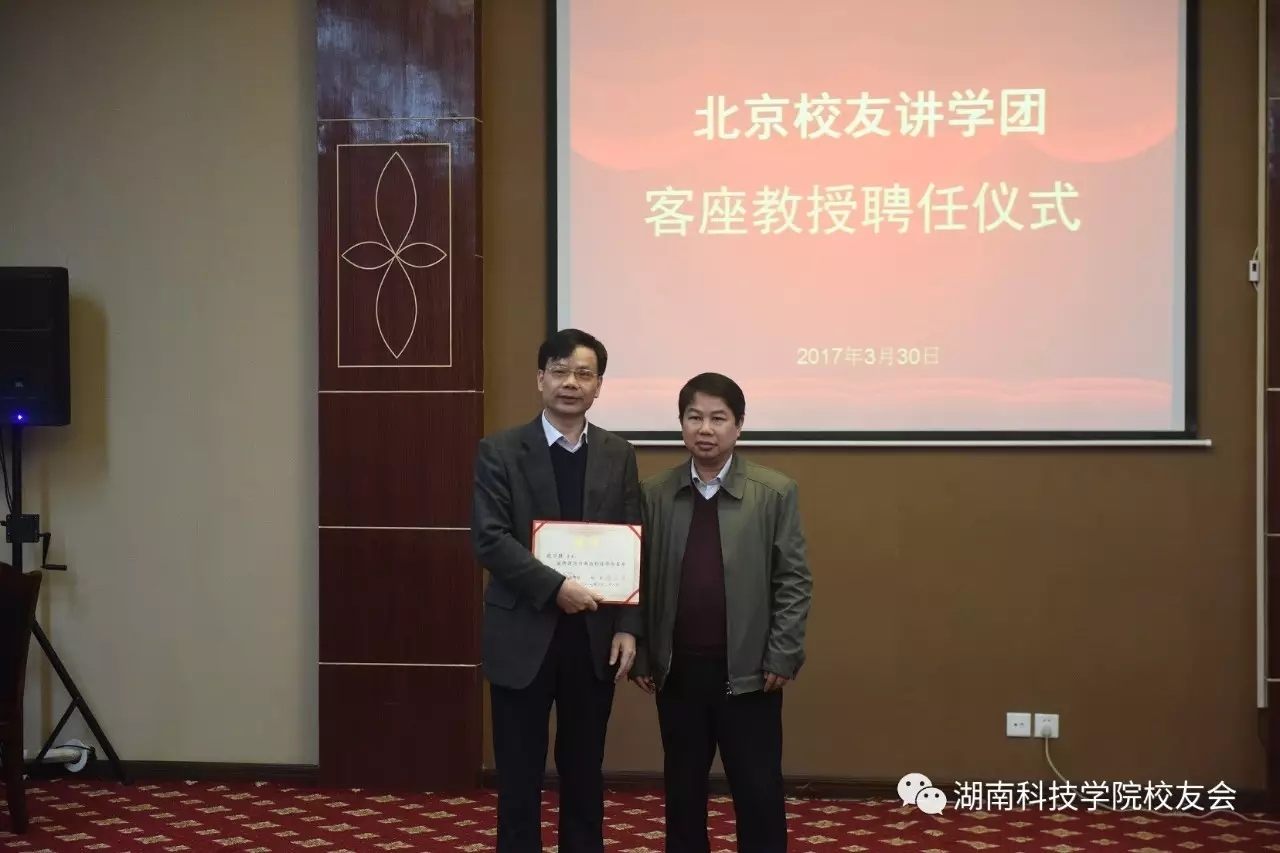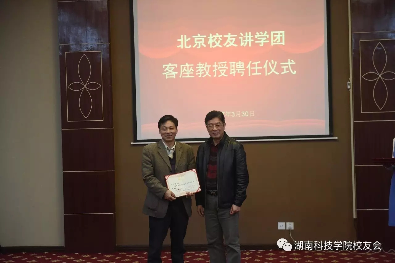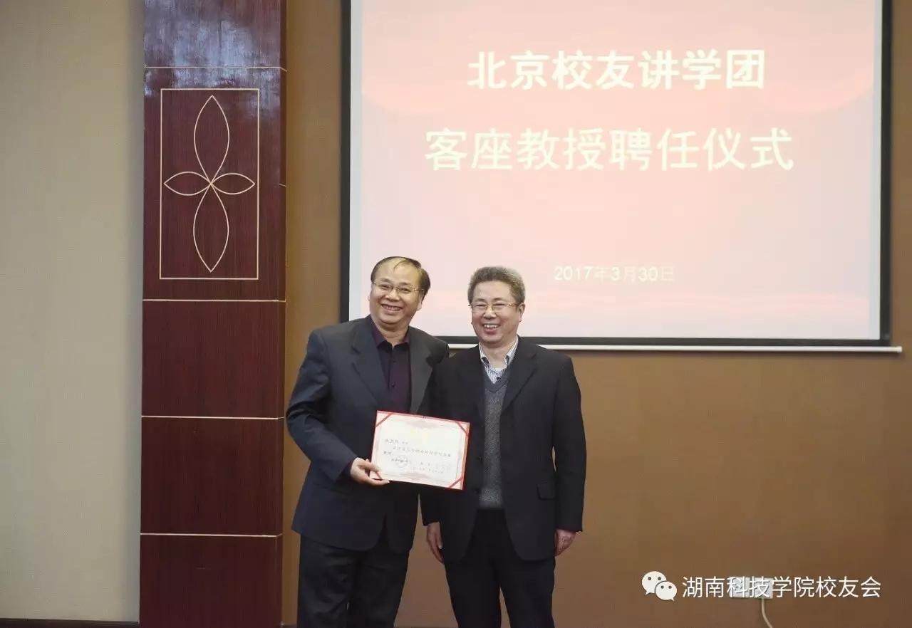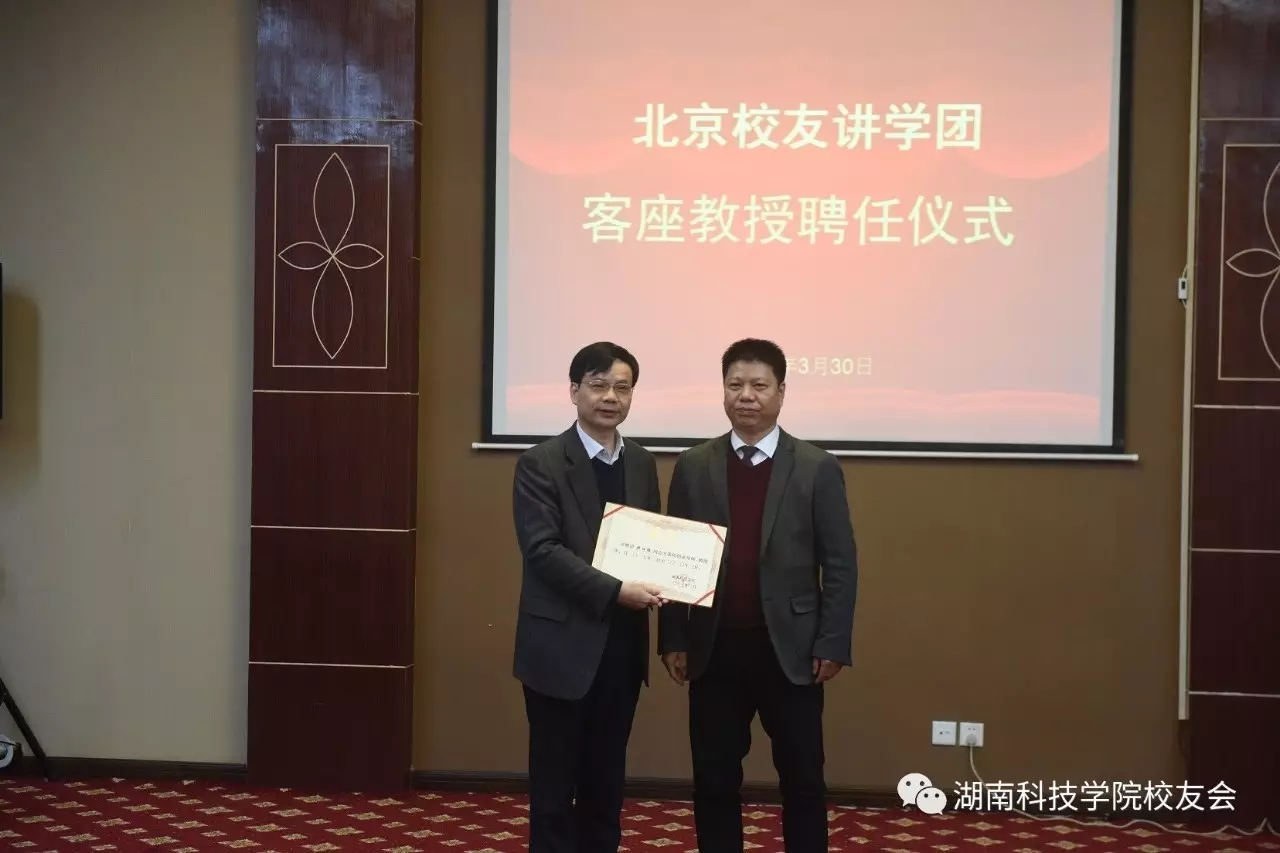 3月30日上午,学校举行北京校友讲学团客座教授受聘仪式。校长曾宝成及校领导唐艳明、宋宏福、彭立威、郑山明、李常健、吴小林、程智开出席并为受聘校友颁发证书。