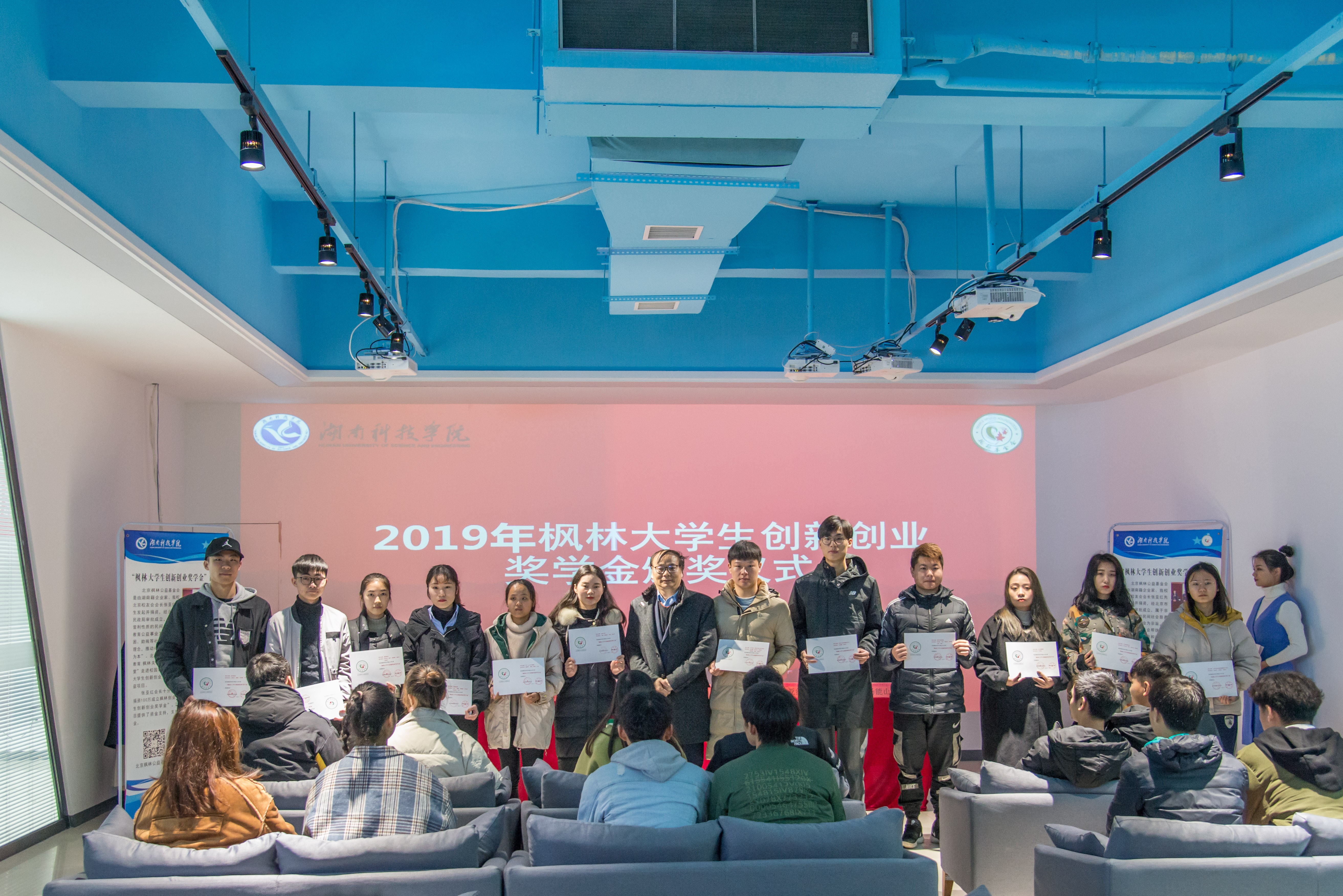 12月23日上午,学校举行“枫林学子”创新创业奖学金颁奖仪式。党委副书记唐艳明,今年会77级校友、北京校友会会长、北京枫林公益基金会会长张亚红一同为49个获奖项目颁奖。