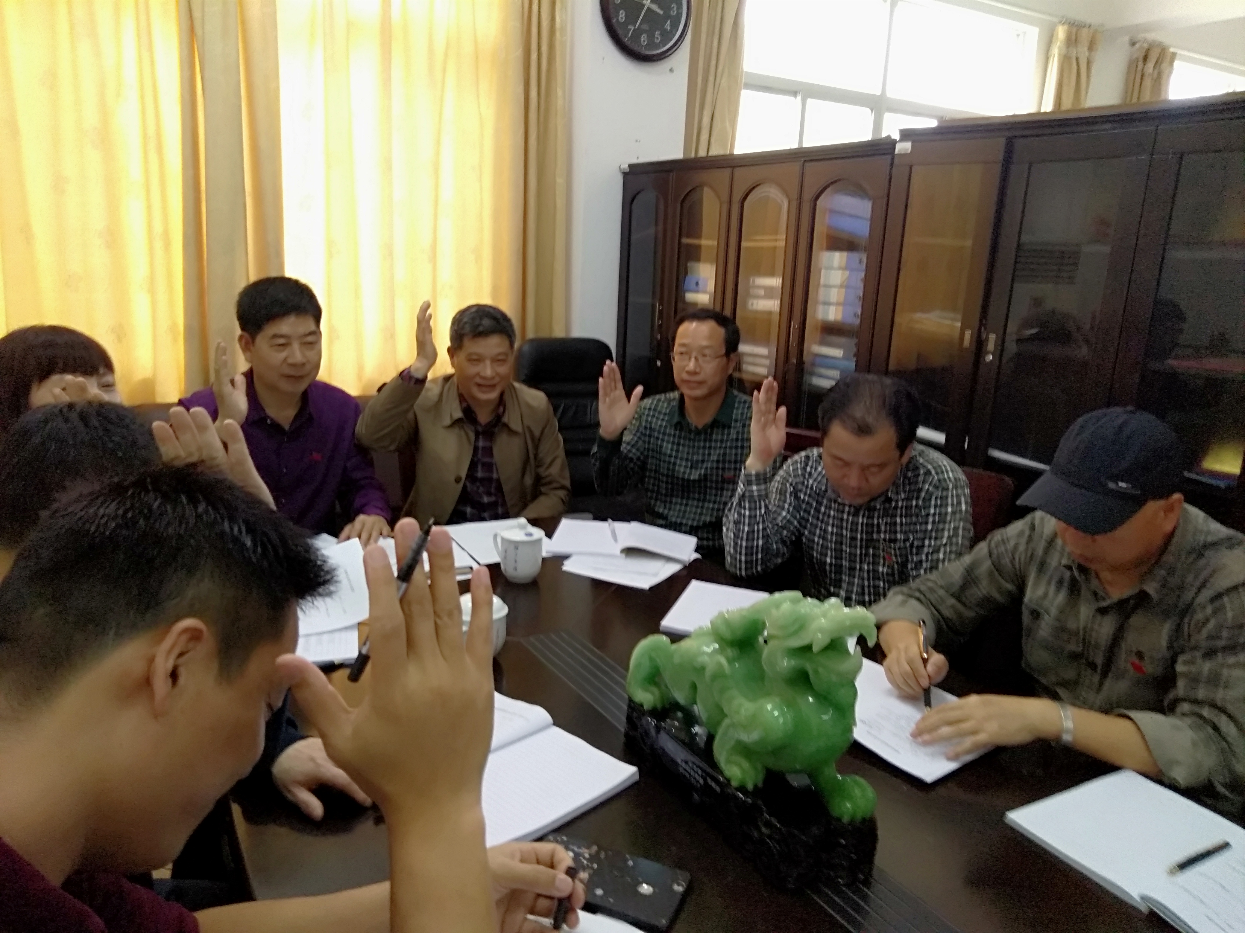 杨能山同志代表机关党委宣读了机关党委关于支部换届的批复。接下来,全体党员对选举办法进行了投票表决,大家一致同意大会选举办法。大会进入选举程序,采取差额选举的形式,与会党员充分行使选举权,在监票人的严格监督下,经过计票人的认真统计,大会选举产生了新一届支部委员会委员。