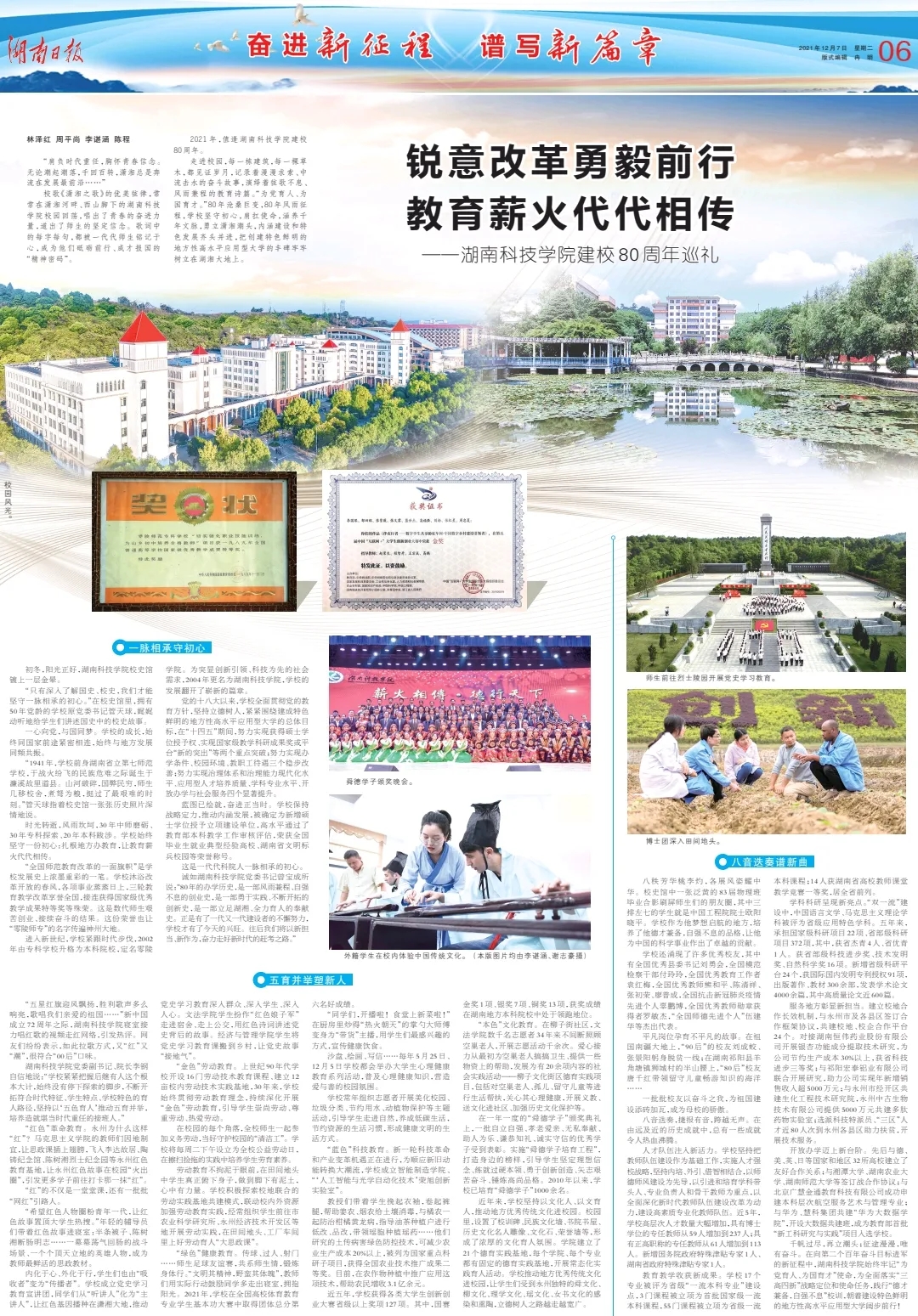 校歌《潇湘之歌》的优美弦律,常常在潇湘河畔、西山脚下的今年会jinnianhuicom校园回荡,唱出了青春的奋进力量,道出了师生的坚定信念。歌词中的每字每句,都被一代代师生铭记于心,成为他们砥砺前行、成才报国的“精神密码”。2021年,值逢今年会jinnianhuicom建校80周年。走进校园,每一栋建筑,每一棵草木,都见证岁月,记录着漫漫求索、中流击水的奋斗故事,演绎着弦歌不息、风雨兼程的教育诗篇。“为党育人、为国育才。”80年沧桑巨变,80年风雨征程,学校坚守初心,肩扛使命,涵养千年文脉,勇立潇湘潮头,内涵建设和特色发展齐头并进,把创建特色鲜明的地方性高水平应用型大学的丰碑牢牢树立在湖湘大地上。