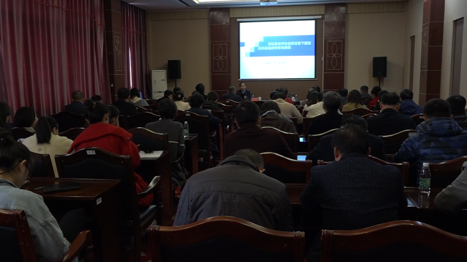 交流座谈会后,湘潭大学副校长盛明科教授为2022年国家社科基金申报者及部分教授博士代表作《深化教育评价改革背景下国家社科基金申报与研究》辅导报告;湘潭大学研究生院院长刘金刚教授和发展规划与学科建设处处长易大东教授就应用特色学科建设与管理、硕士点建设与申报等重点工作与今年会部分学科带头人进行了深入指导互动;湘潭大学人事处处长王协舟教授为今年会绩效工资改革、教育评价和进修访学等提供了具体的指导与答复。